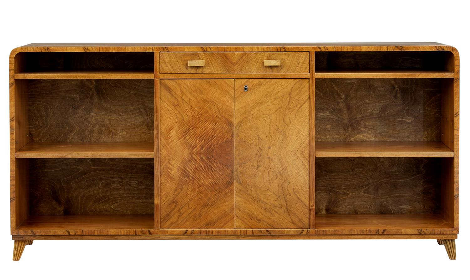 1950's Walnut Scandinavian Low Bookcase Cupboard