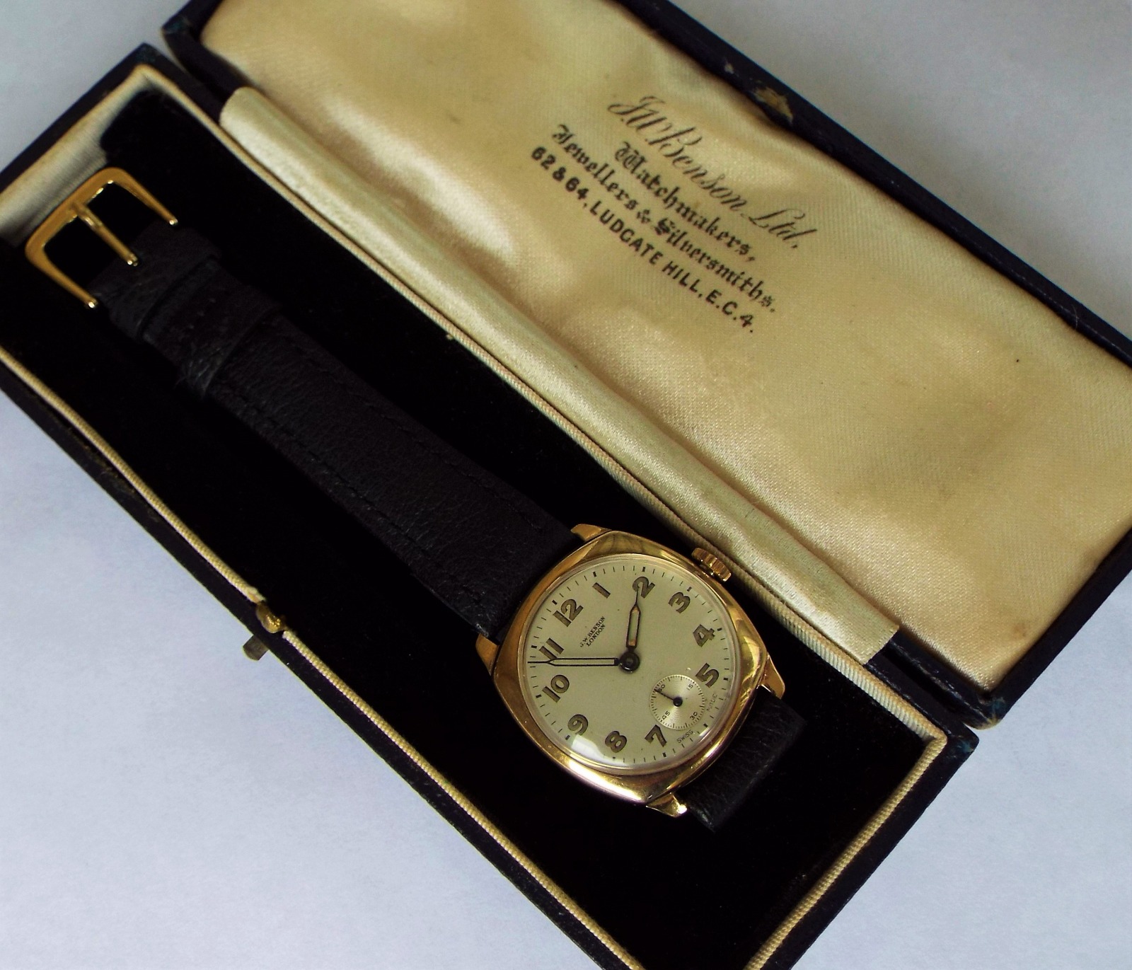 1952 9ct Gold J W Benson Mid-Sized Watch, Boxed