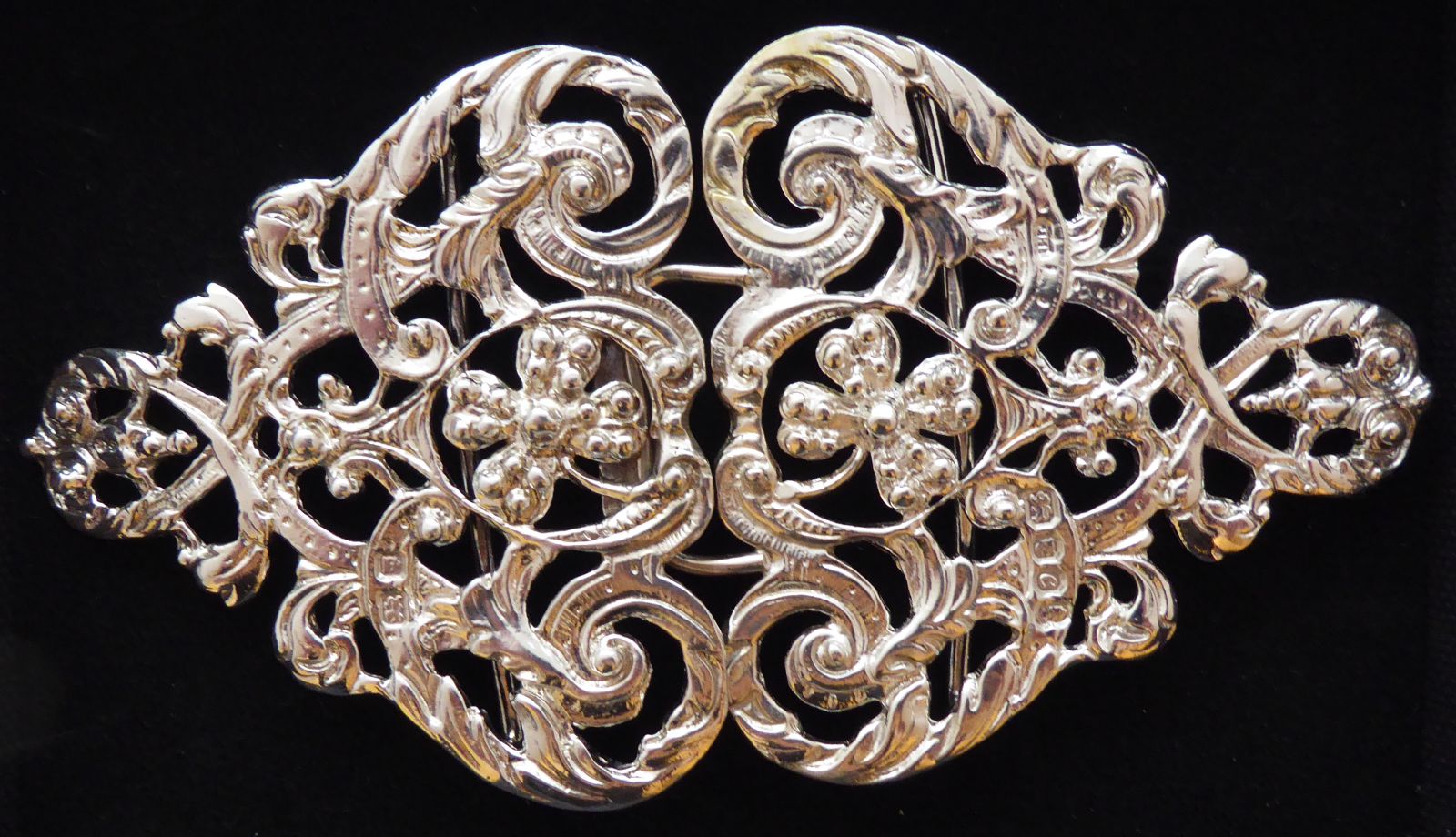 1952 Hallmarked Solid Silver Nurses Belt Buckle Four Leaf Clover