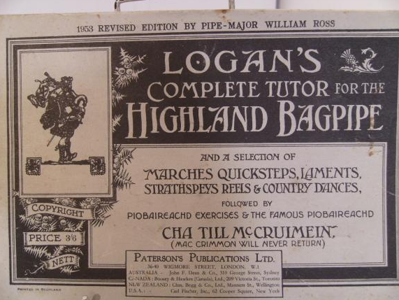 1953 Logan's Tutor Book for the Highland Bagpipes