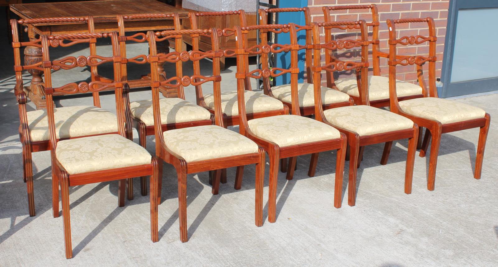 1960 Set 10 Mahogany Rope Back Dining Chairs. 8+2 Carvers