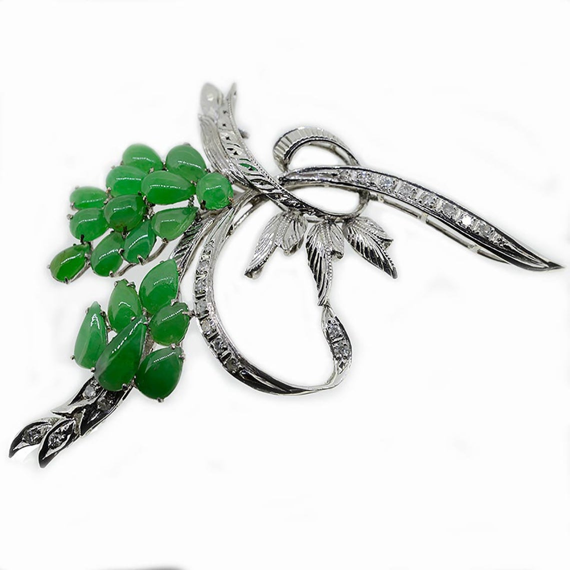 1960s 18K Jadeite & Diamond Floral Spray Brooch