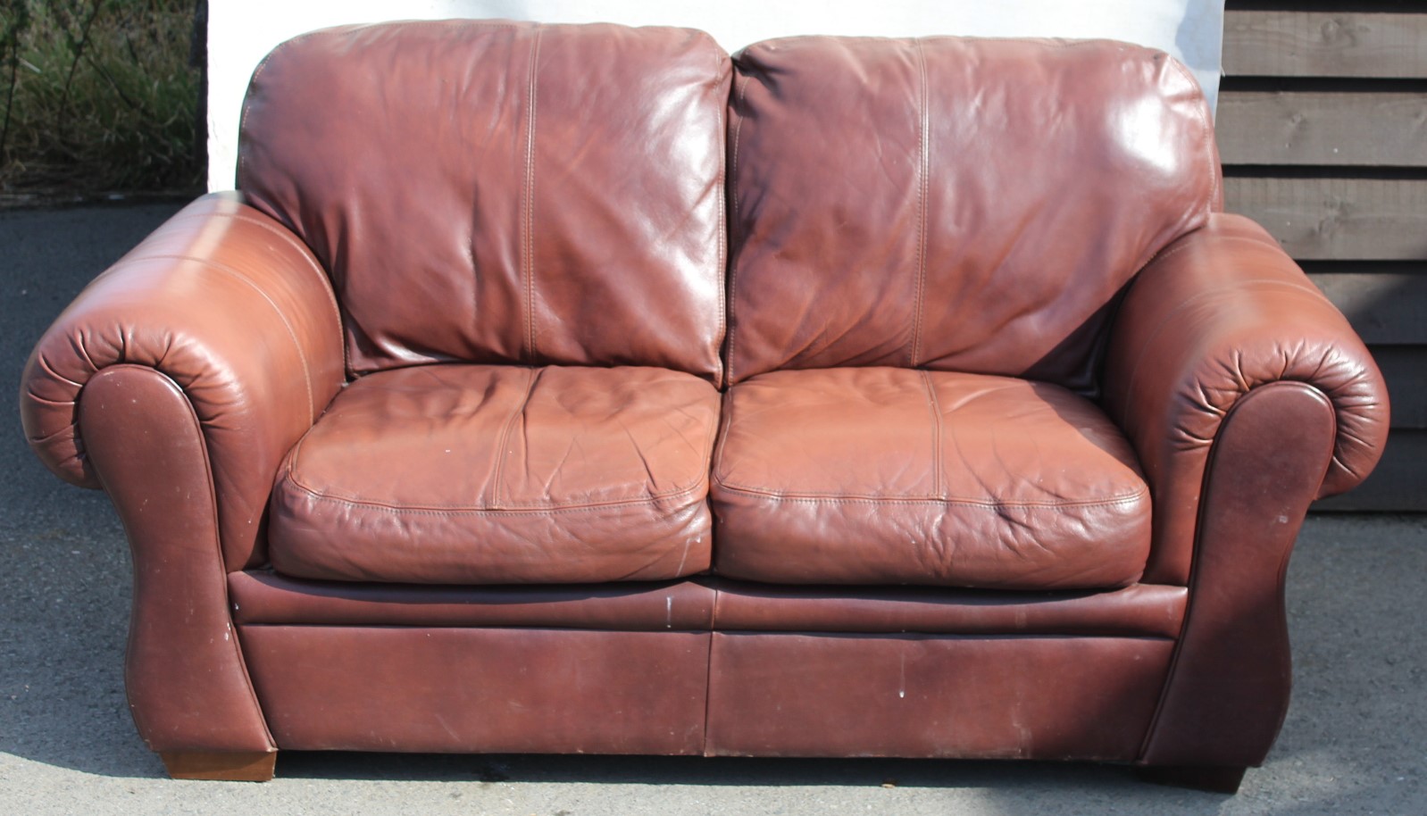 1960s 2 Seater Brown Leather Sofa Rolled Arms