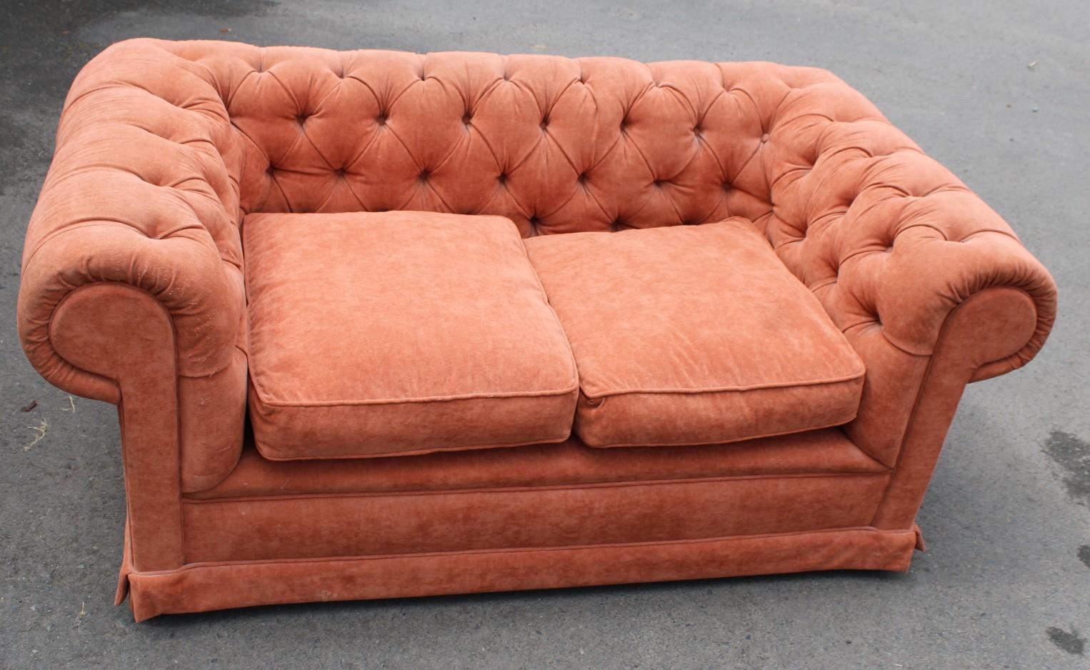 1960s 2 Seater Orange Chesterfield Sofa