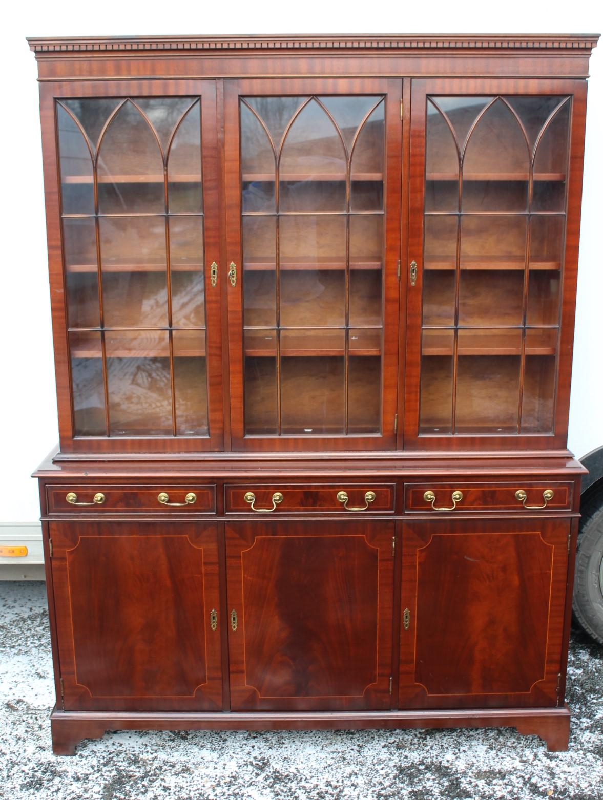 1960s 3 Door Mahogany Bookcase with Glazed Top