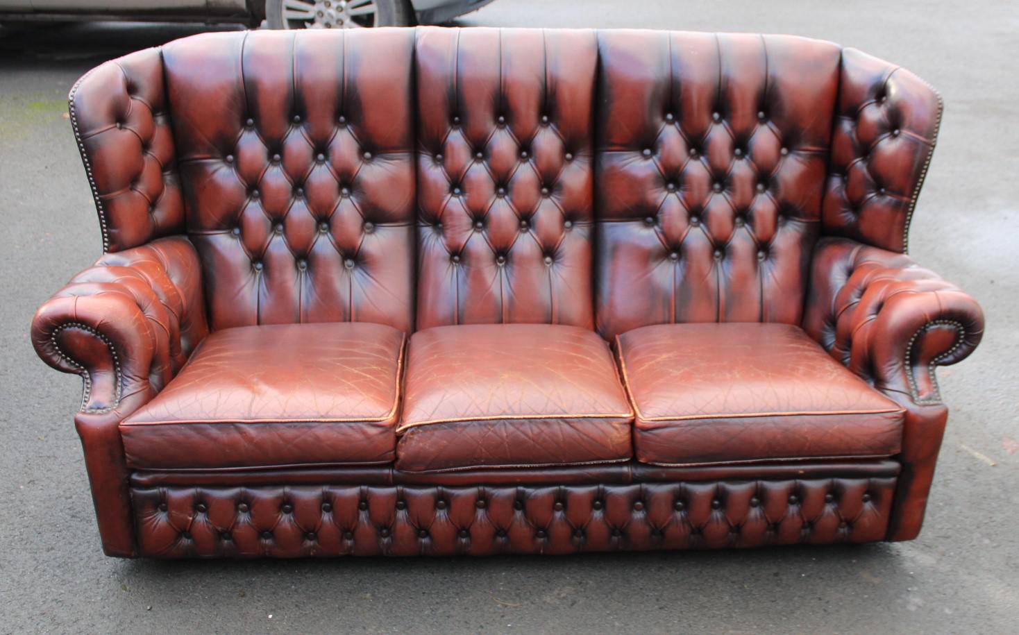 1960s 3 Seater Brown Leather Chesterfield Sofa
