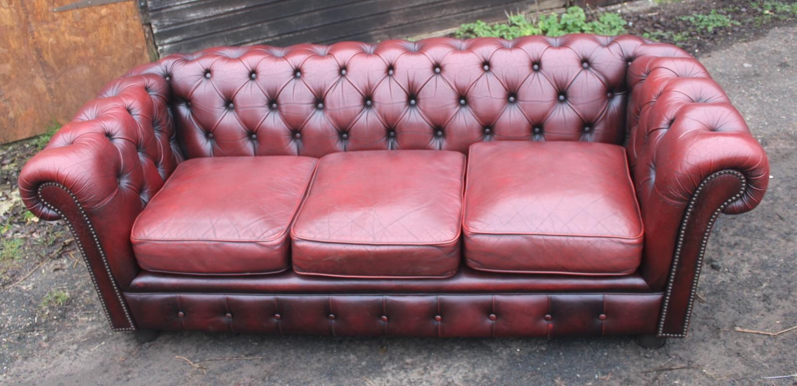 1960s 3 Seater Red Leather Chesterfield Sofa