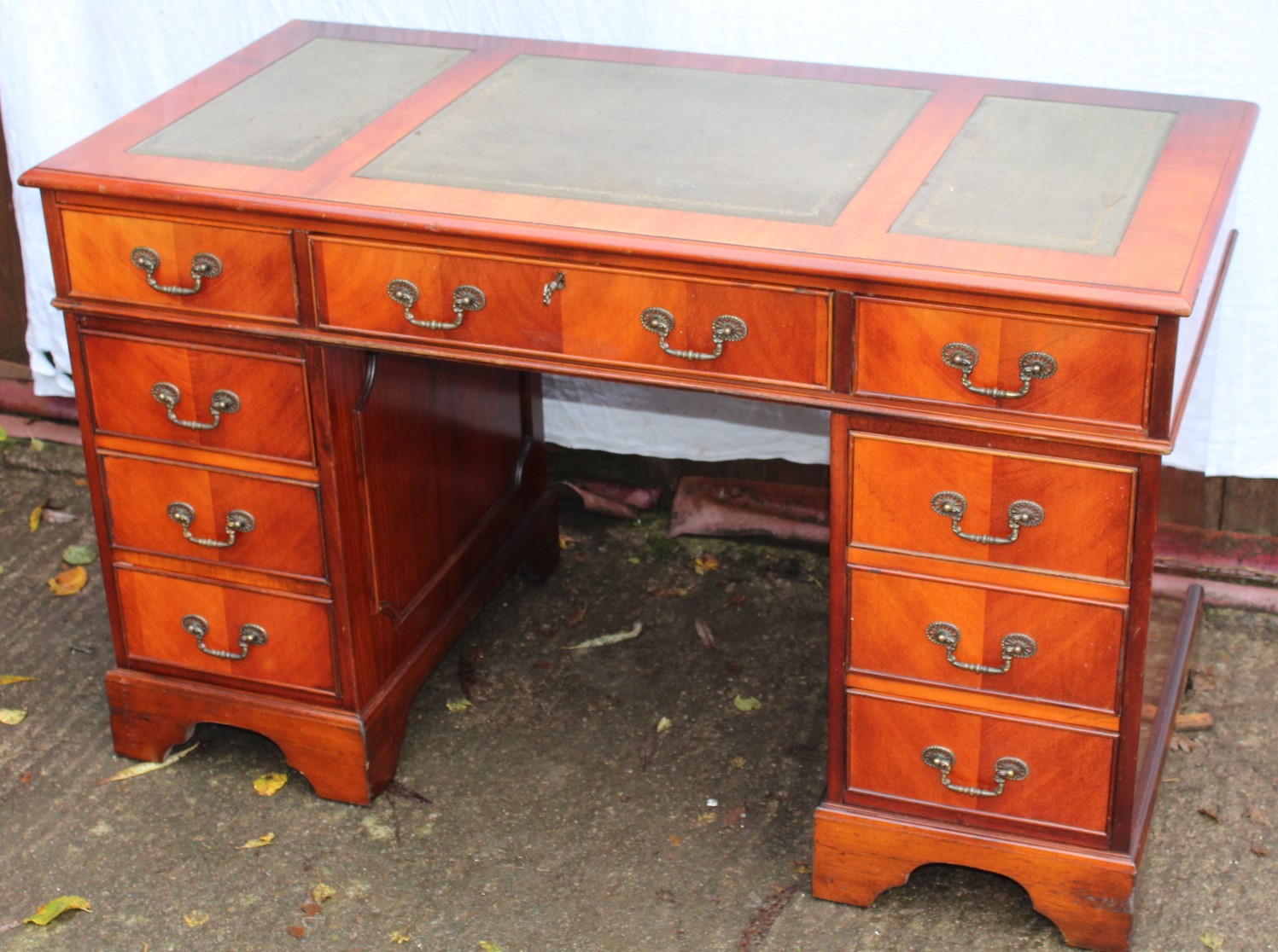 1960s 4ft Mahogany Pedestal Desk with Green Leather Top Inset in 3 Parts