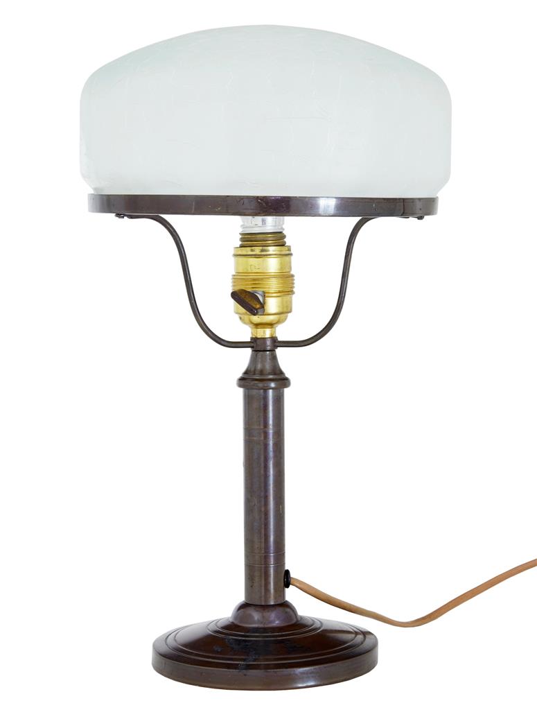 1960's Bronze Table Lamp With Frosted Glass Shade