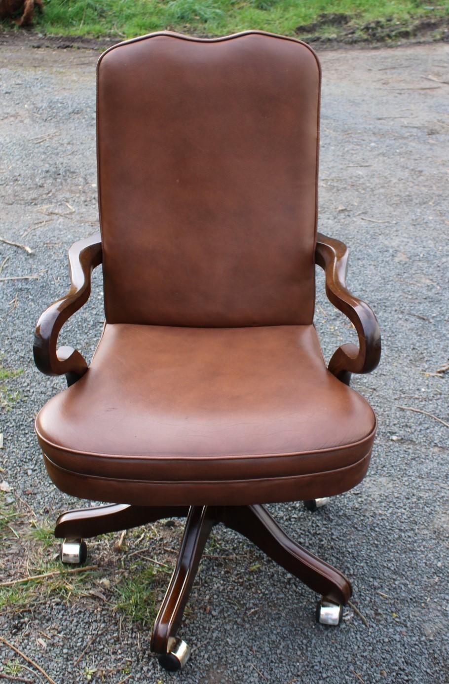 1960s Brown Leather Office Chair Good Shaped Arms