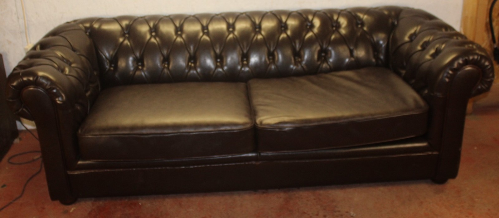 1960s Brown Leatherette 3 Seater Chesterfield Sofa