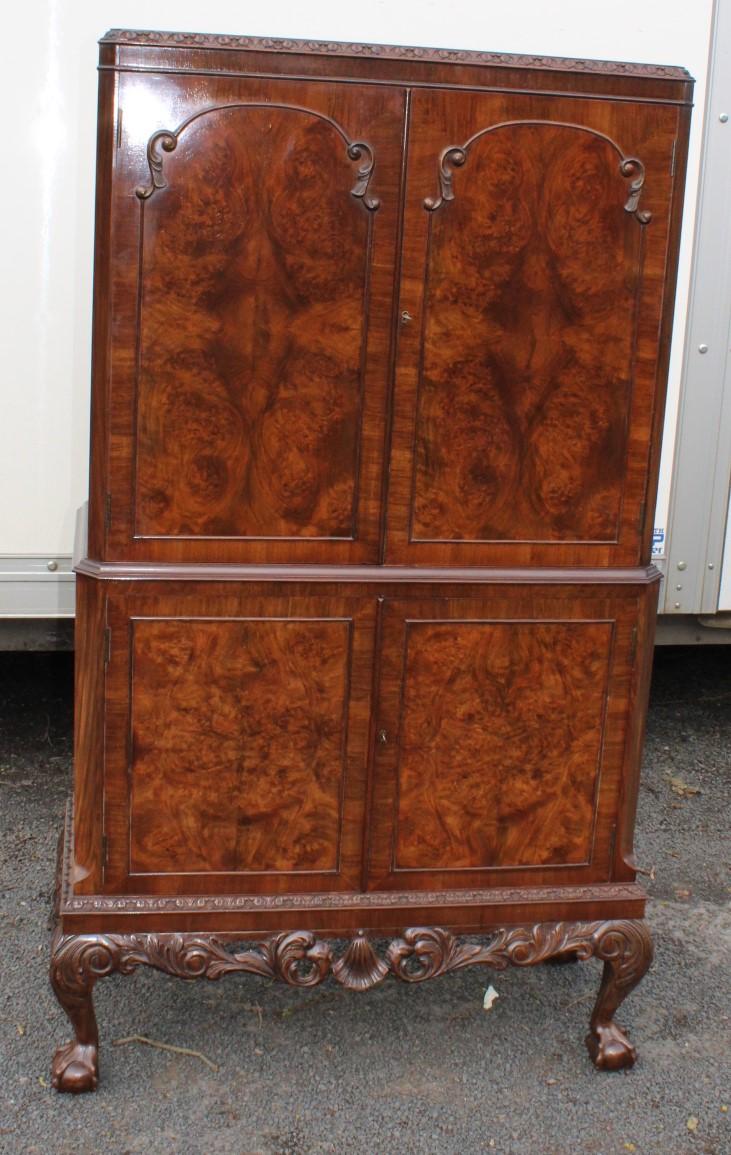 1960s Burr Walnut Drinks Cabinet with Glass Shelves
