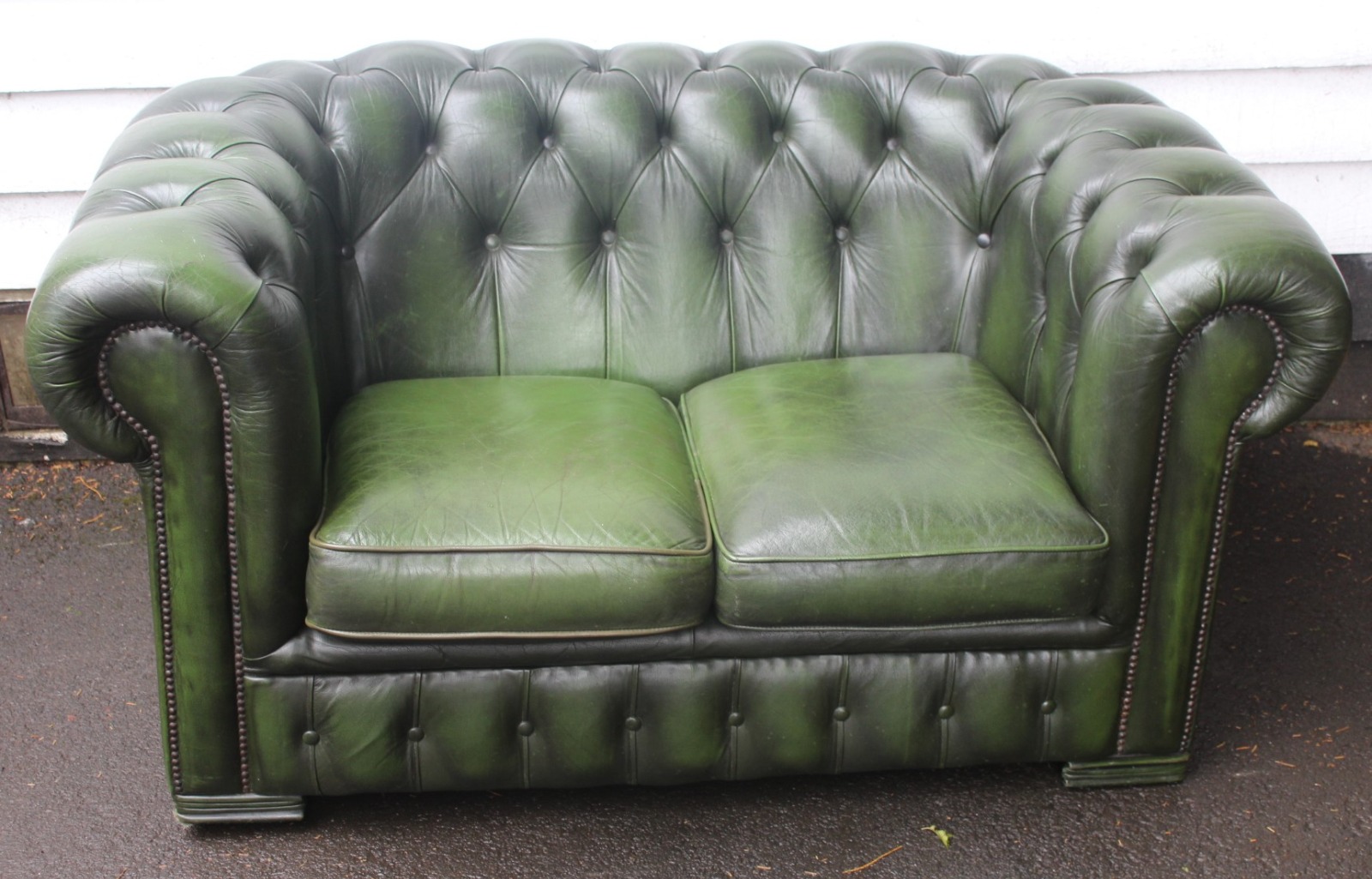 1960s Chesterfield Green Leather 2 Seater Sofa