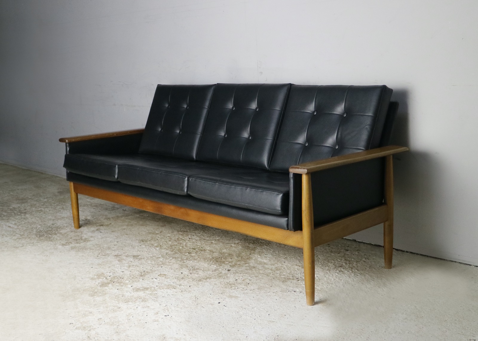 1960s Danish 3 Seat Black Leatherette Sofa