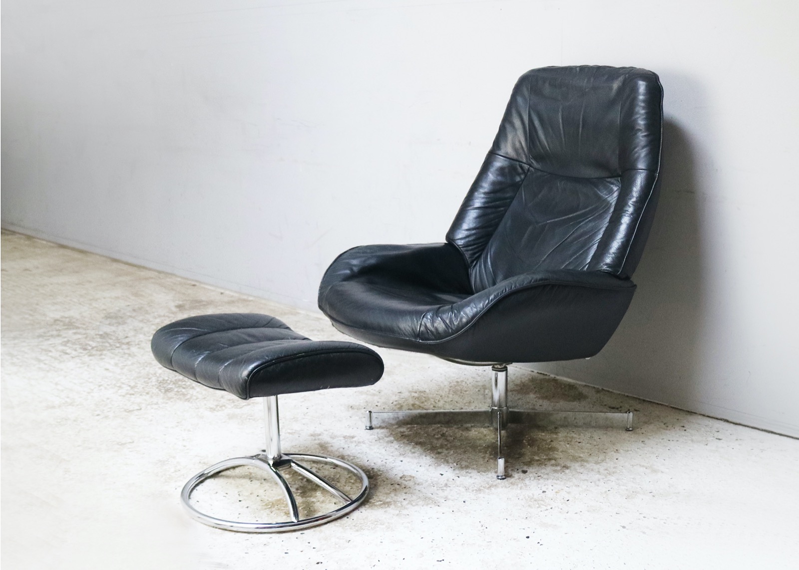 1960s Danish Mid Century Reclining Lounge Chair & Footstool
