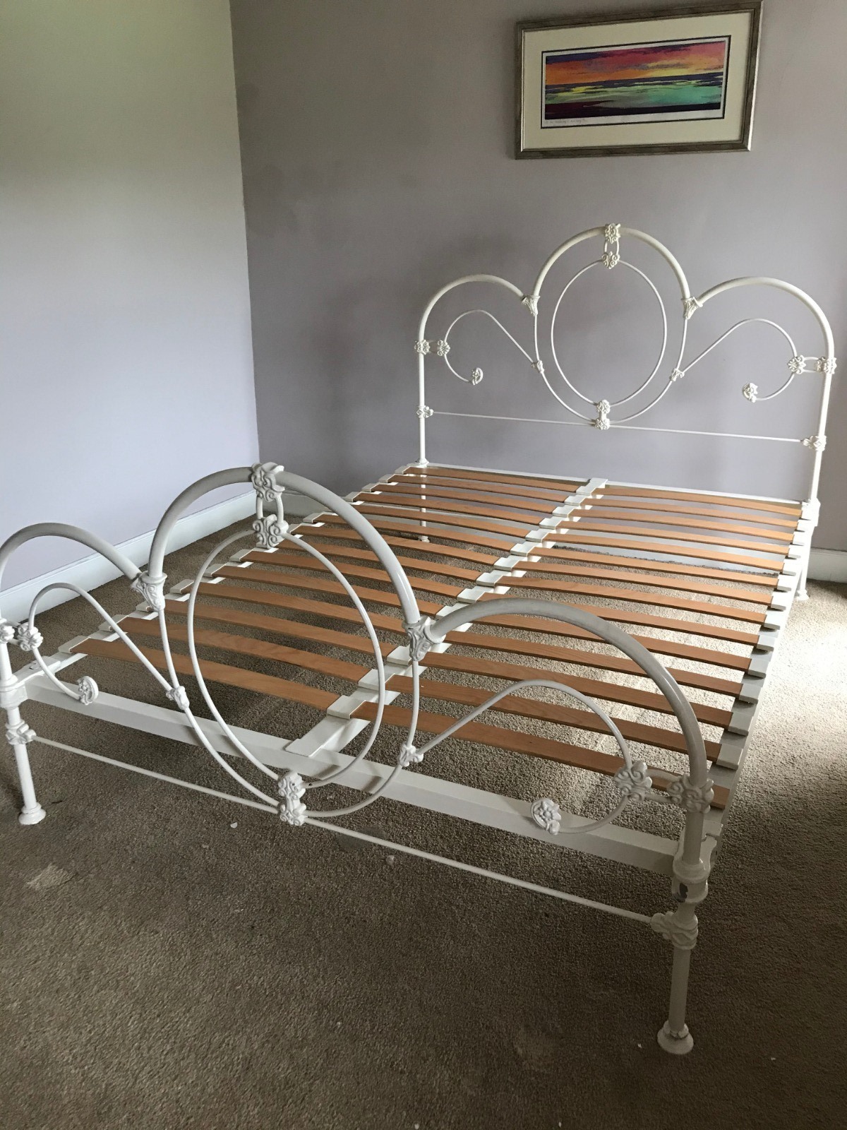 1960s Decorative Double Iron Bed Frame Painted White with Base