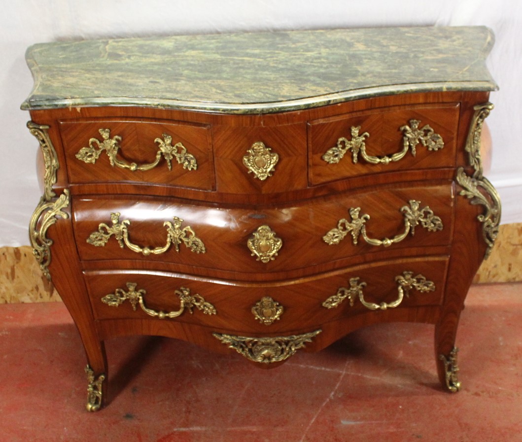 1960s Decorative Mahogany Bombee Chest Drawers with Green Marble Top