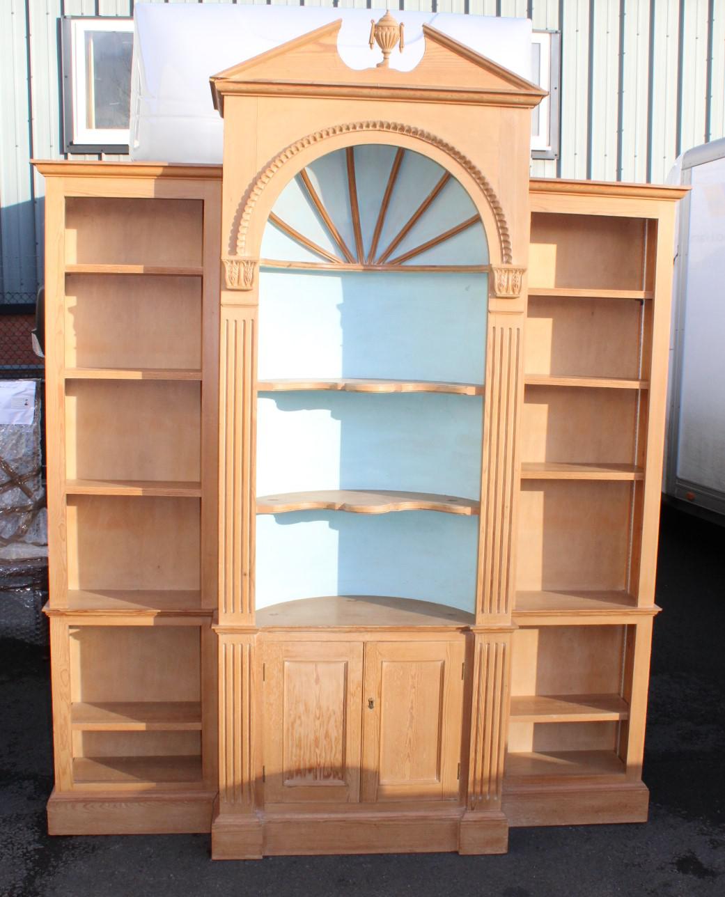 1960s Decorative Triple Pine Bookcase with Concave Middle Section
