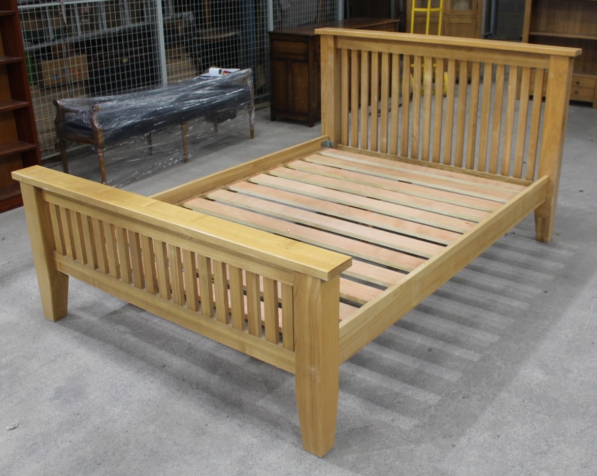 1960s Double Size Golden Oak Bed Frame with Base