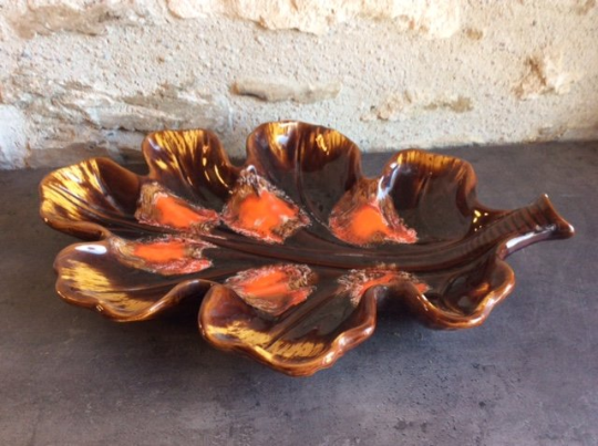 1960s French Volcanic Glaze Oak Leak Shape Food Platter Plate by Vallauris 46cm Long