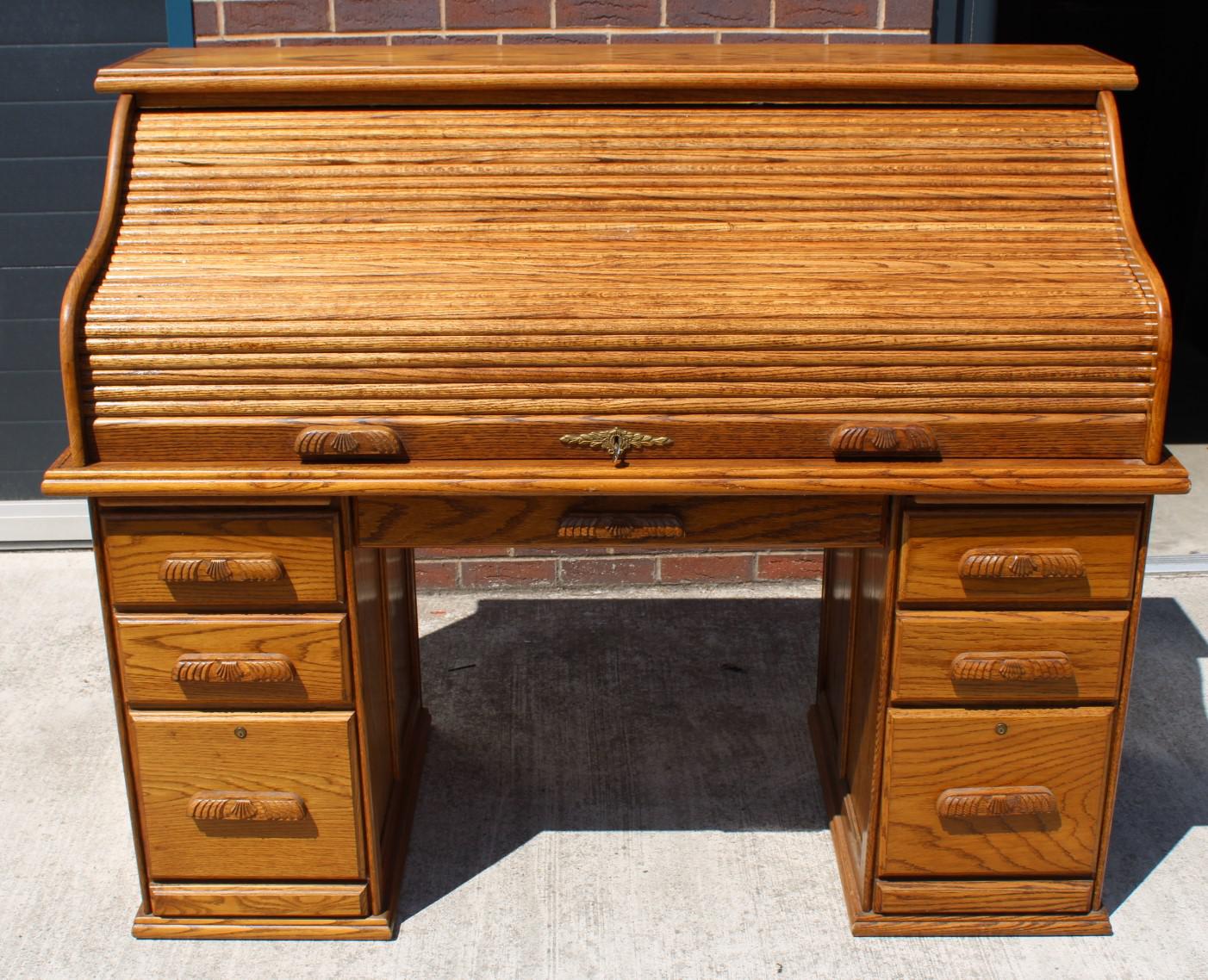 1960s Golden Oak Stype Rolltop Desk - Well Fitted