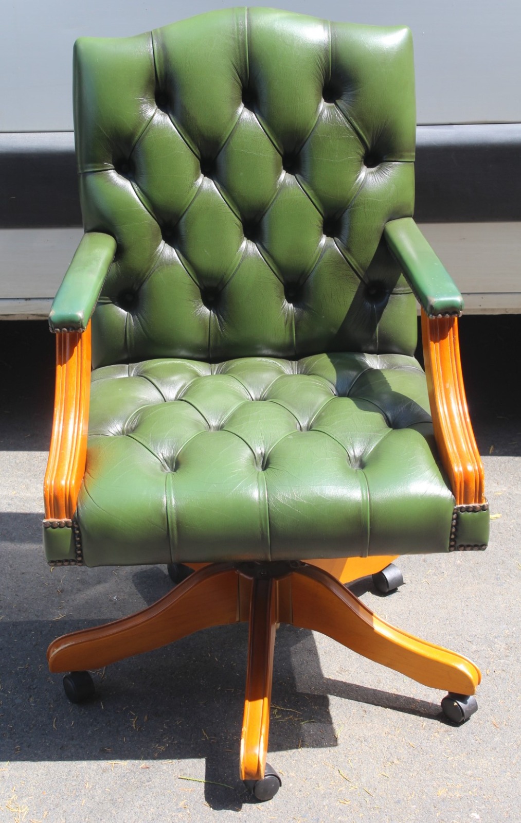 1960s Green Leather Button Backed Office Revolving Chair