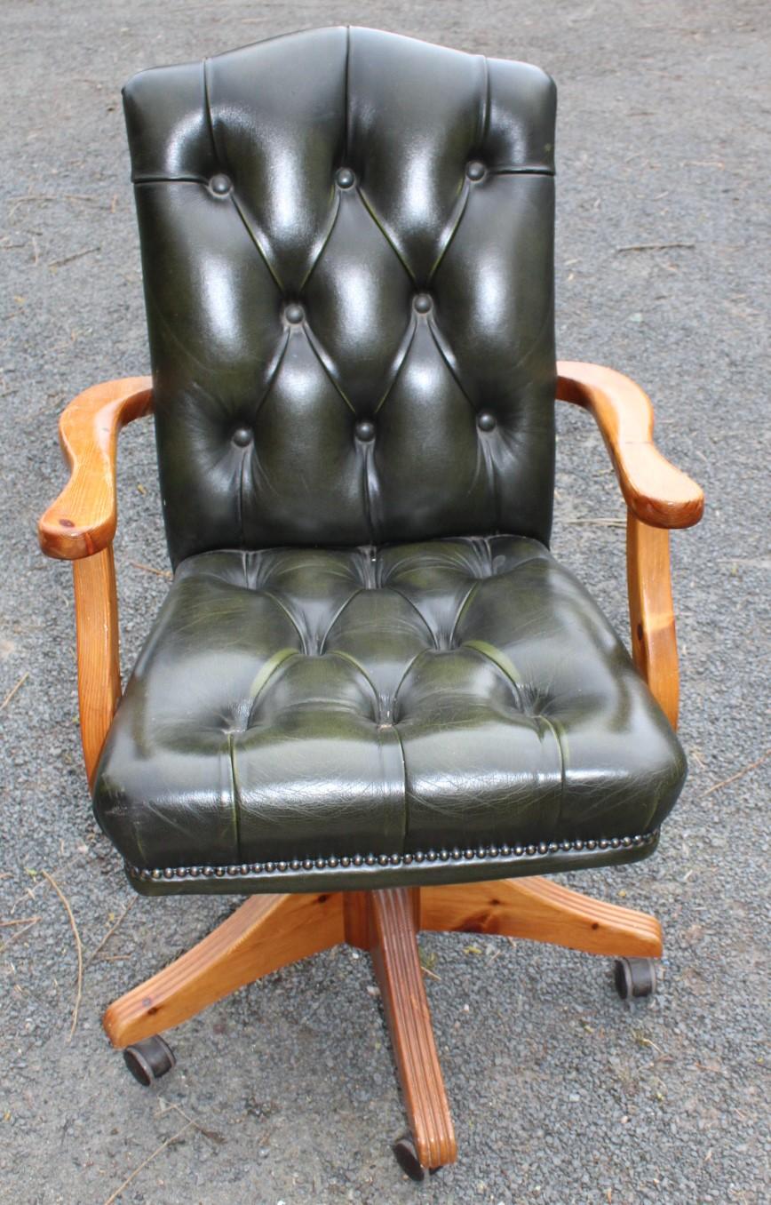 1960s Green Leather Swivel Office Chair