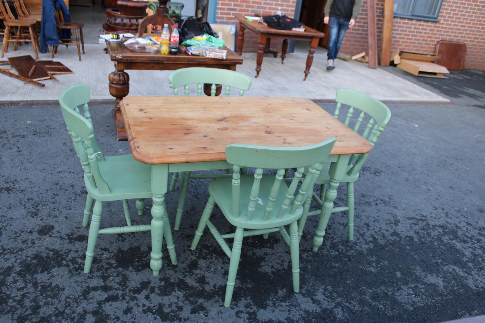 1960s Green Painted Country Pine Table with 4 Pine Chairs