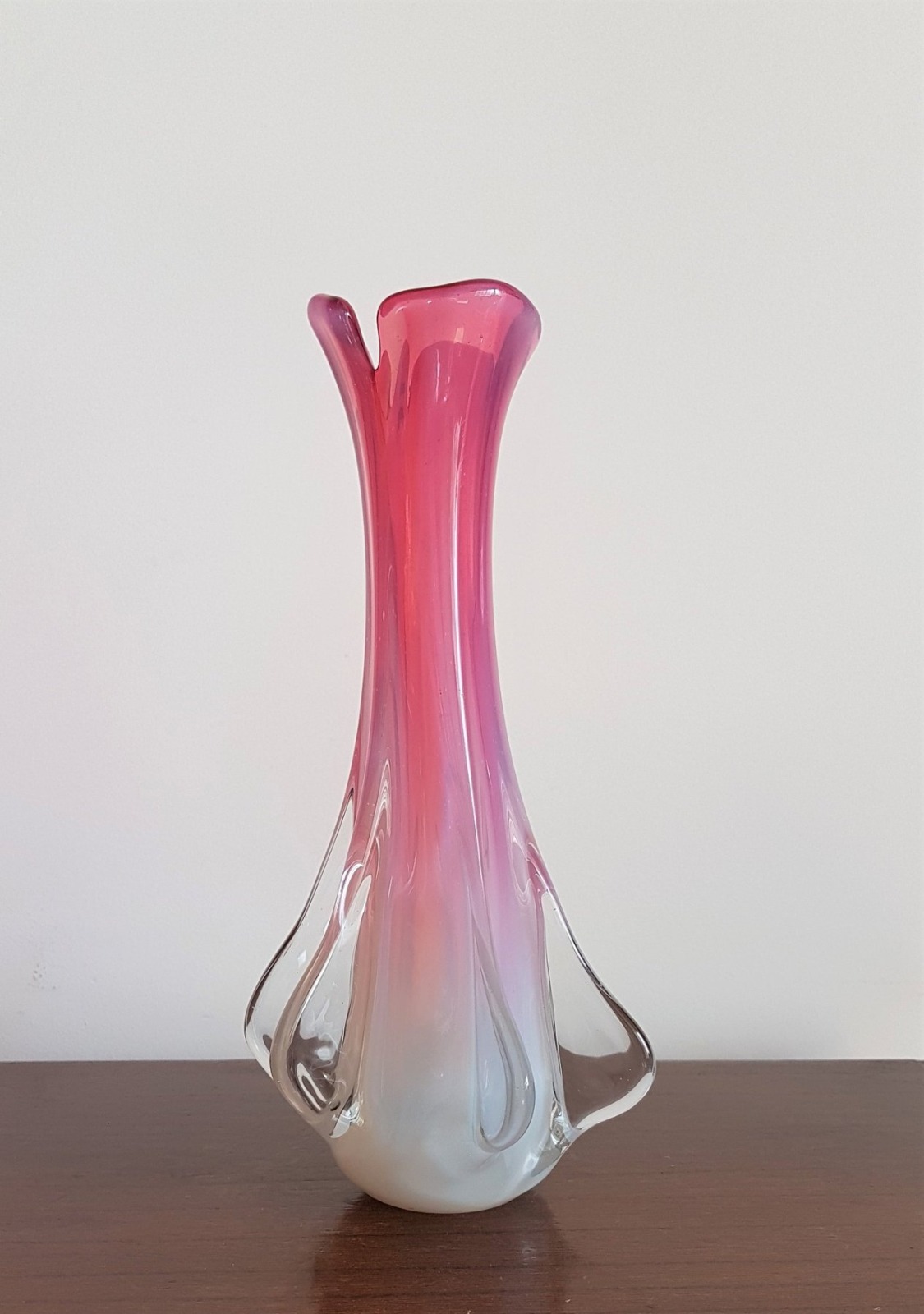 1960s Italian Murano in Rare Pink, Opalescent & Clear 'Propeller' Vase - Labelled