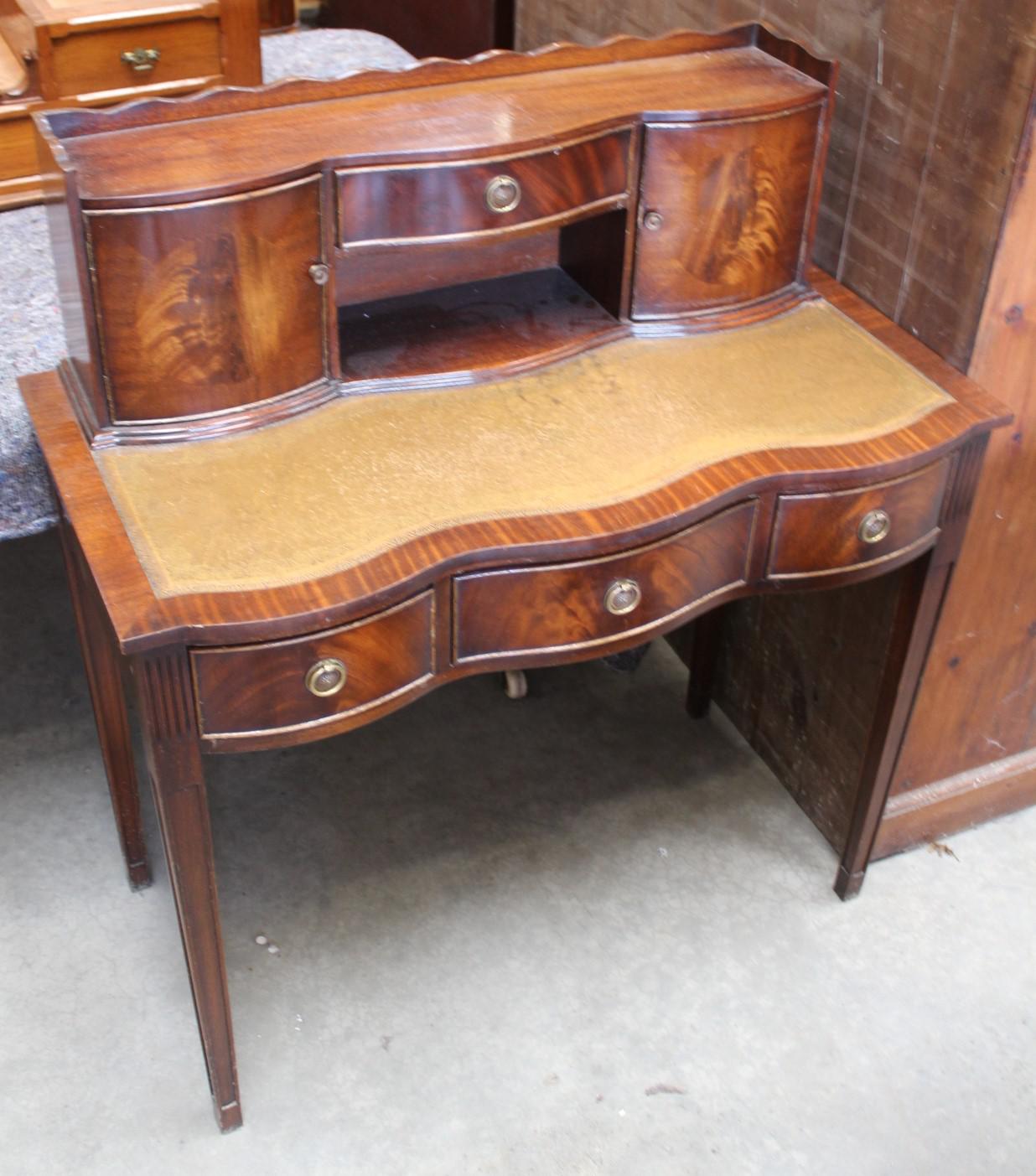 1960s Ladies Mahogany Desk with Green Leather Inset. Nice Shape