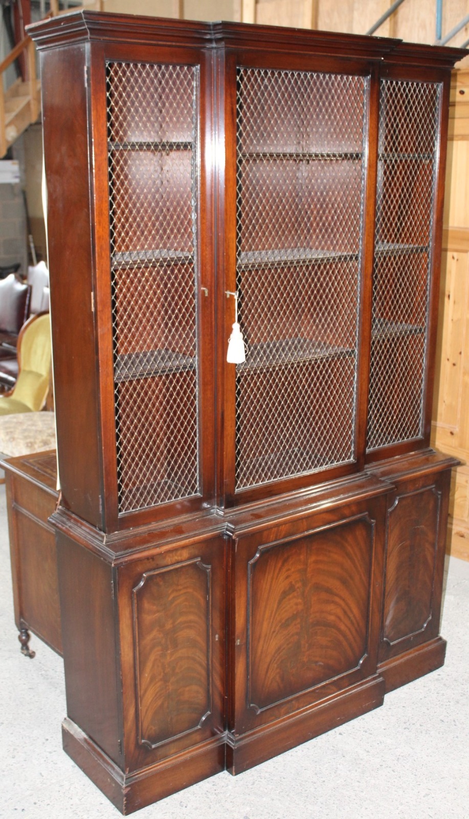 1960s Large 3 Door Mahogany Bookcase with Wire Mesh on Top Section