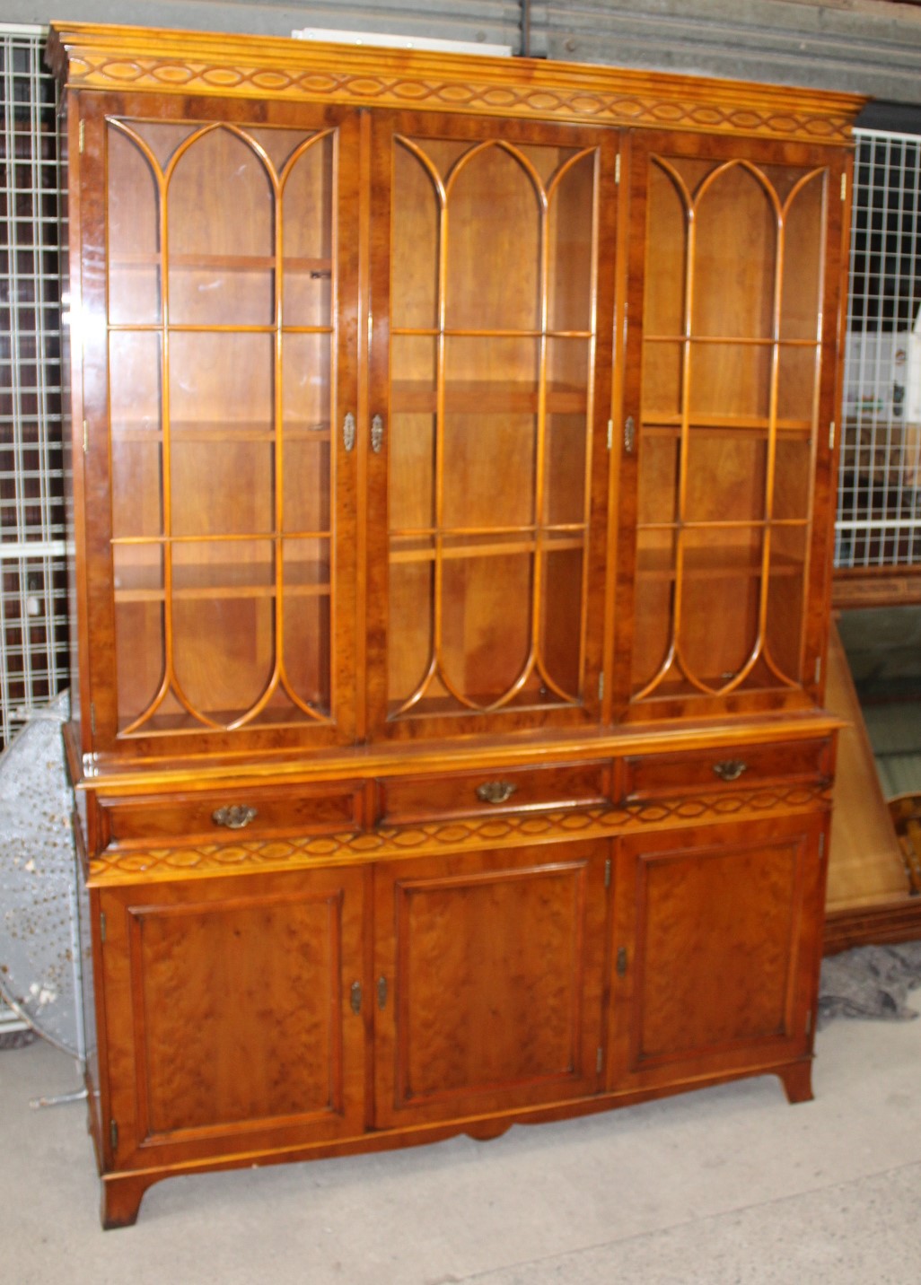 1960s Large 4 Door Yew Wood Bookcase with Glazed Top