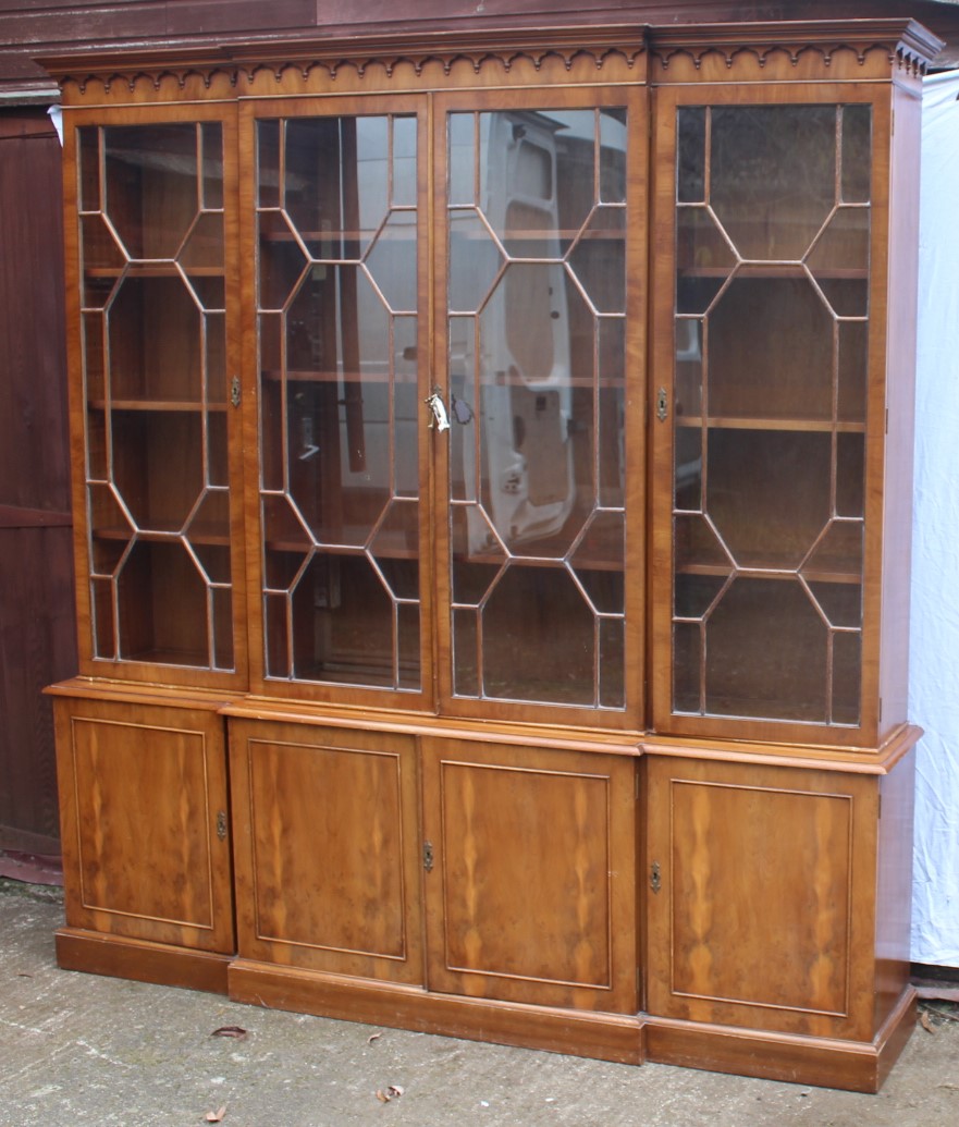 1960s Large Handsome 4 Door Walnut Astragal Glazed Bookcase