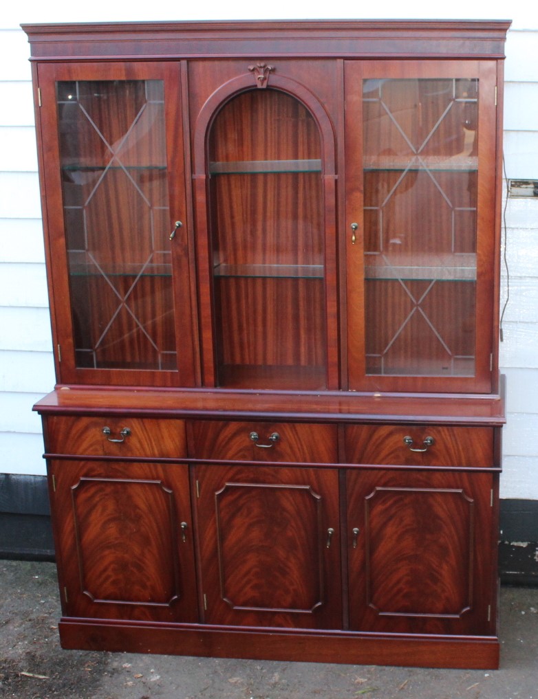 1960s Large Mahogany 3 Door Glazed Bookcase with Storage