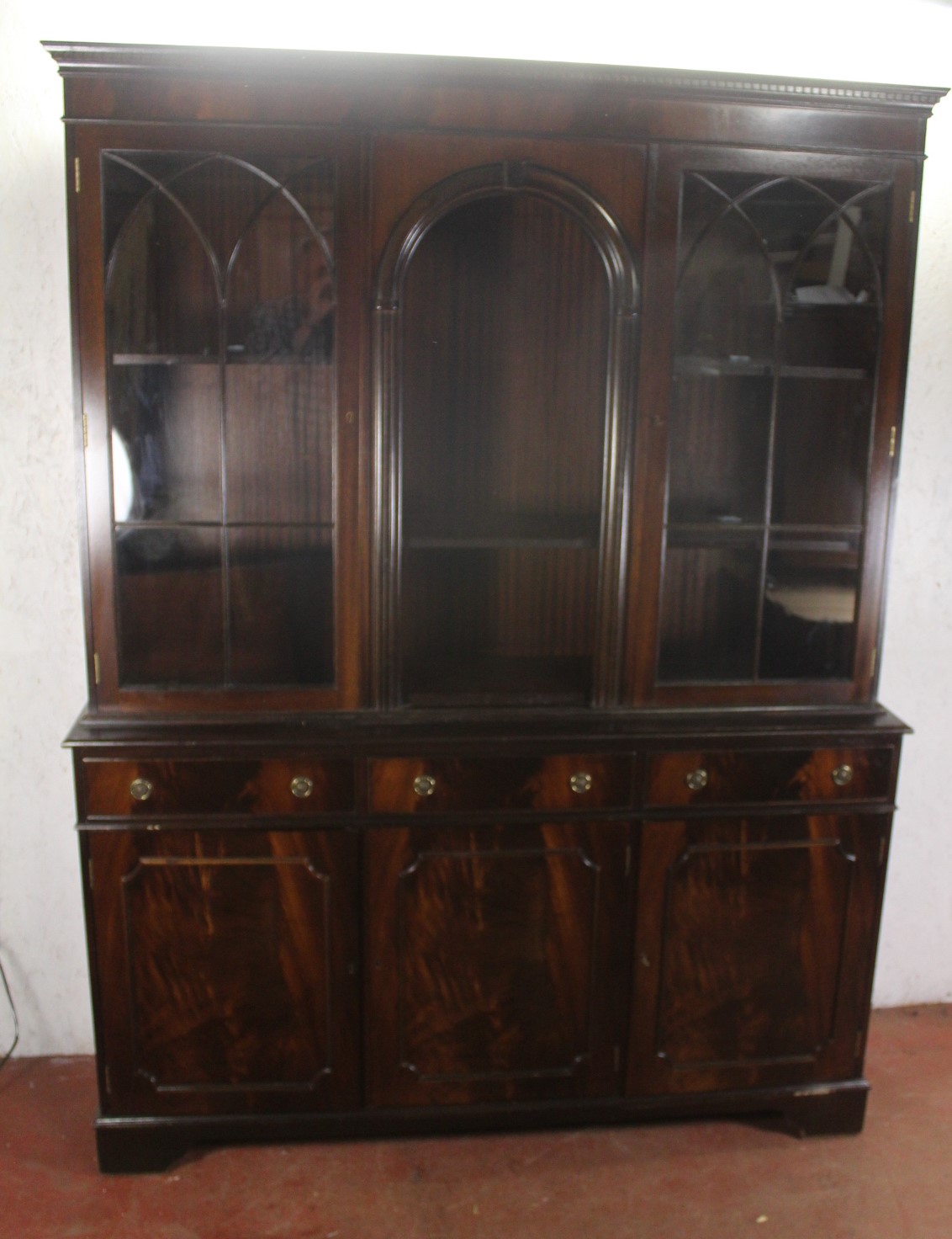 1960s Large Mahogany 3 Door Glazed Bookcase with Storage + Keys