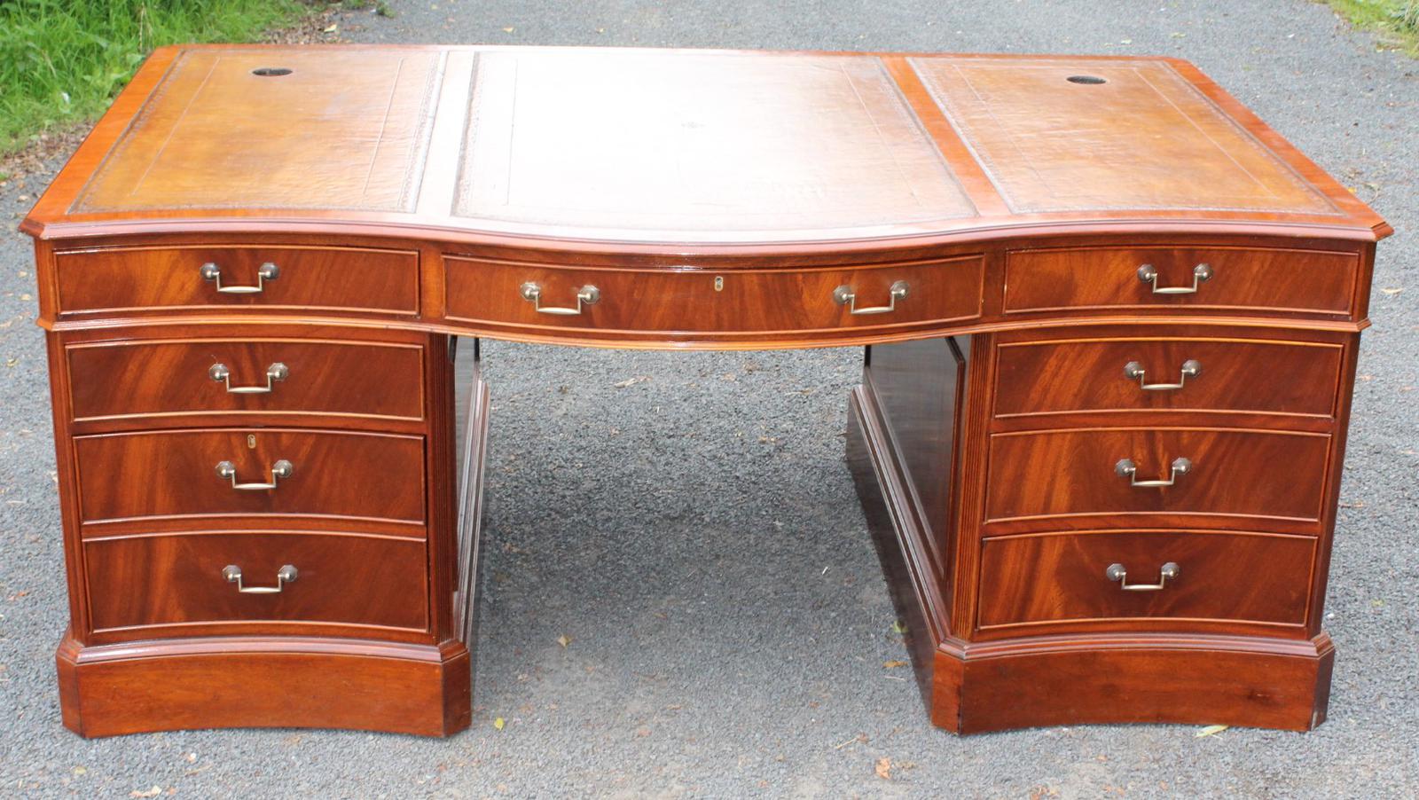 1960s Large Mahogany Bow Fronted Pedestal Desk