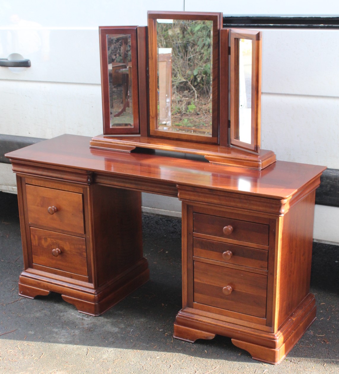 1960s Large Mahogany Dressing Table with Triple Mirror Stand