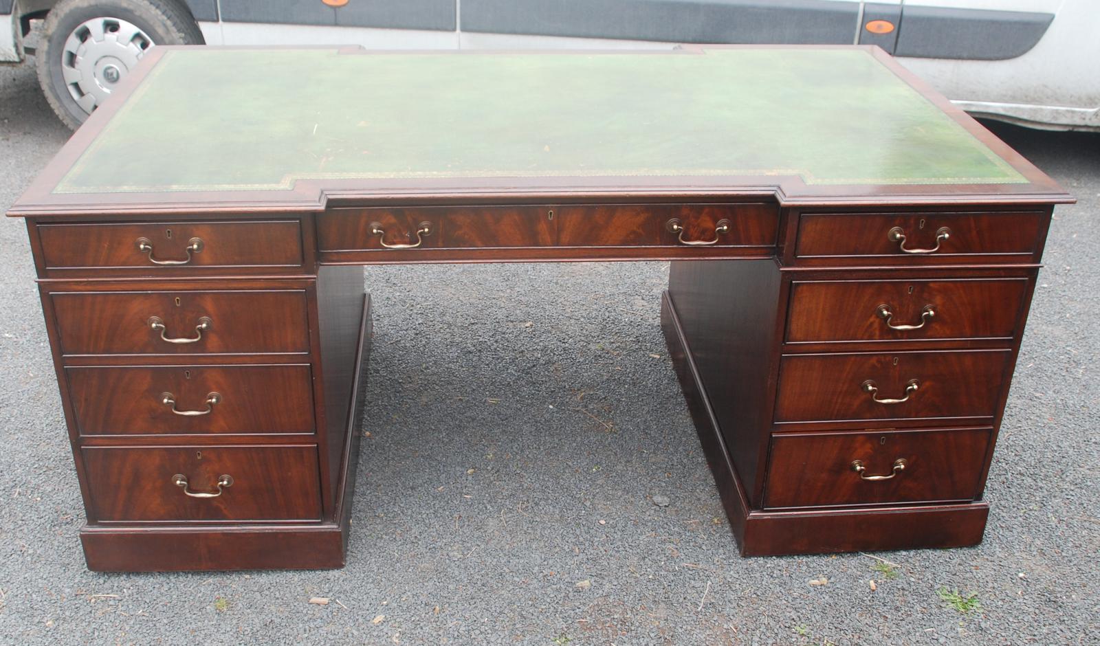 1960s Large Mahogany Partners Desk with Green Leather on Top