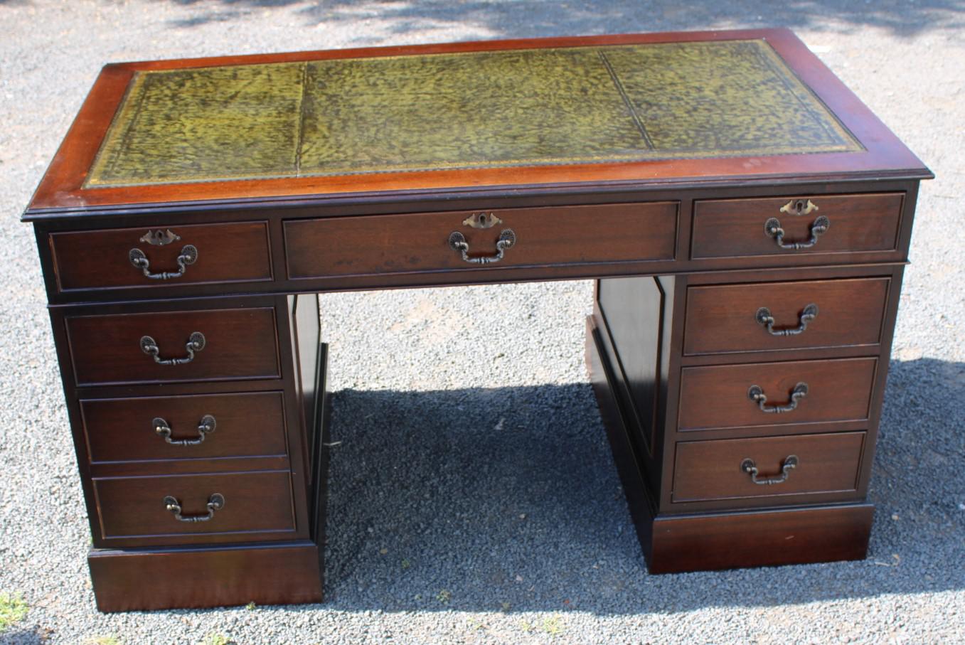1960s Large Mahogany Pedestal Desk with Green Leather