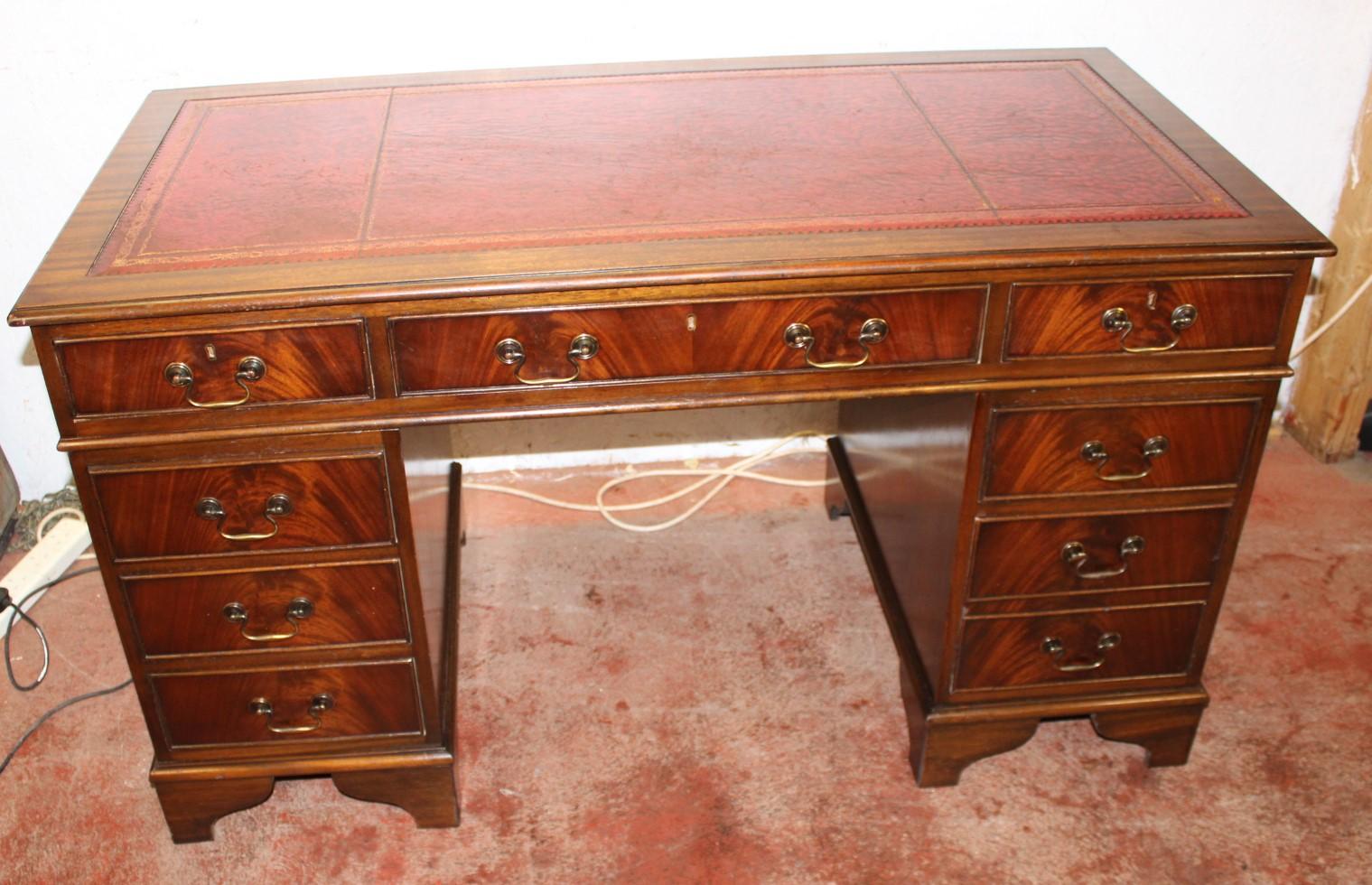 1960’s Large Mahogany Pedestal Desk with Red Leather