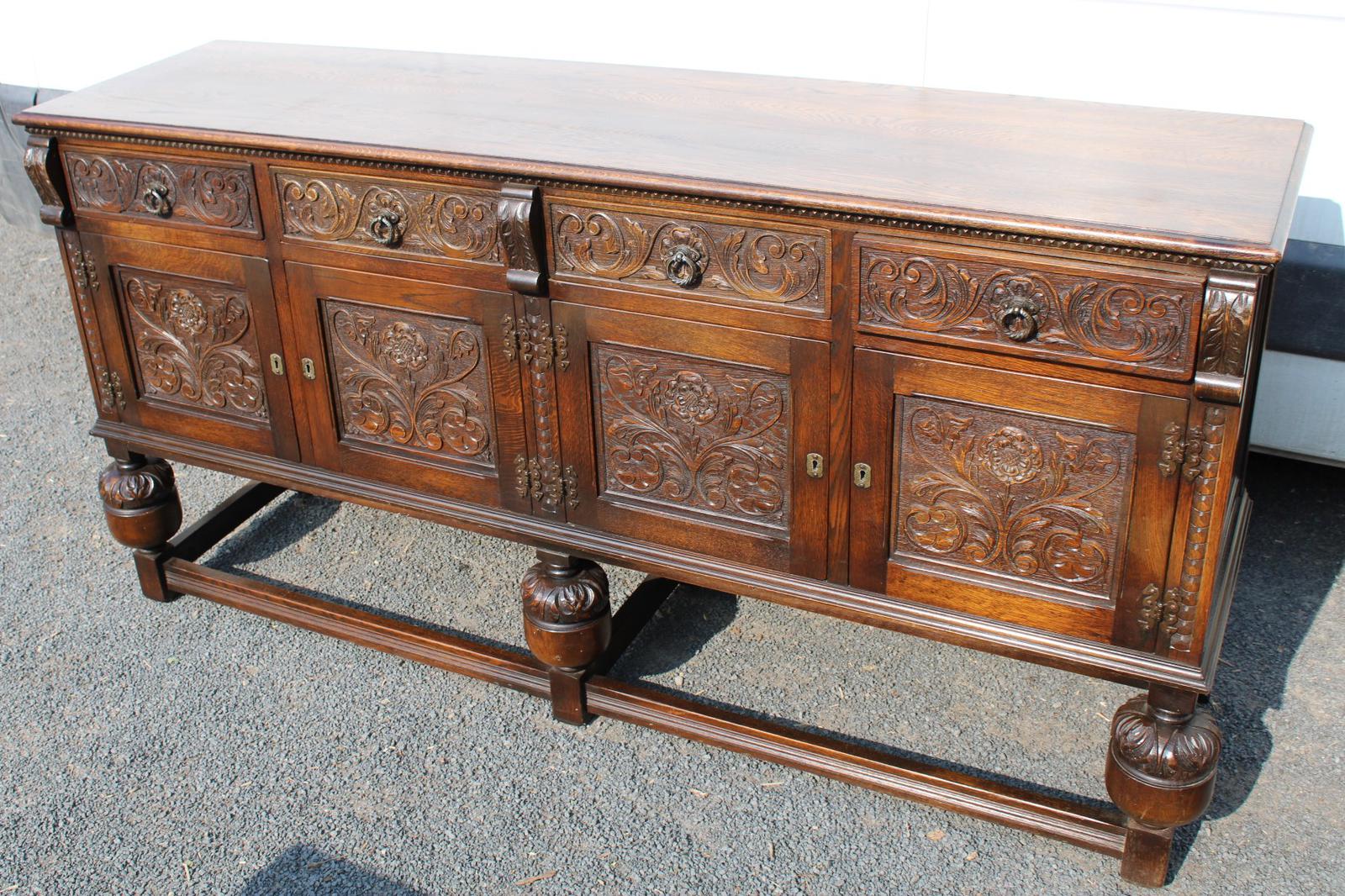 1960s Large Oak 4 x Drawer Sideboard - Well Carved