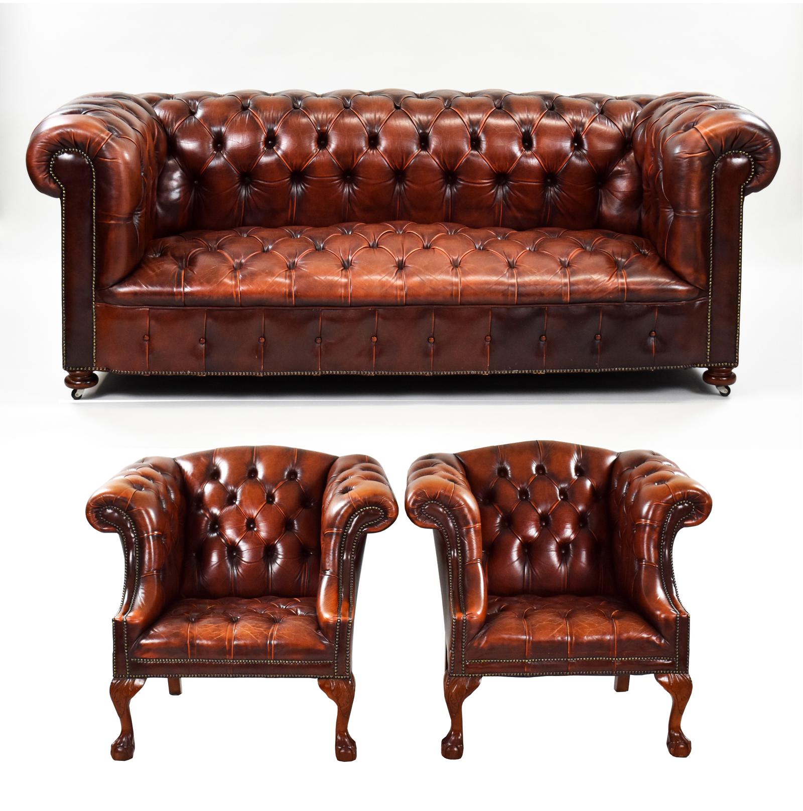 1960's Leather Chesterfield Suite