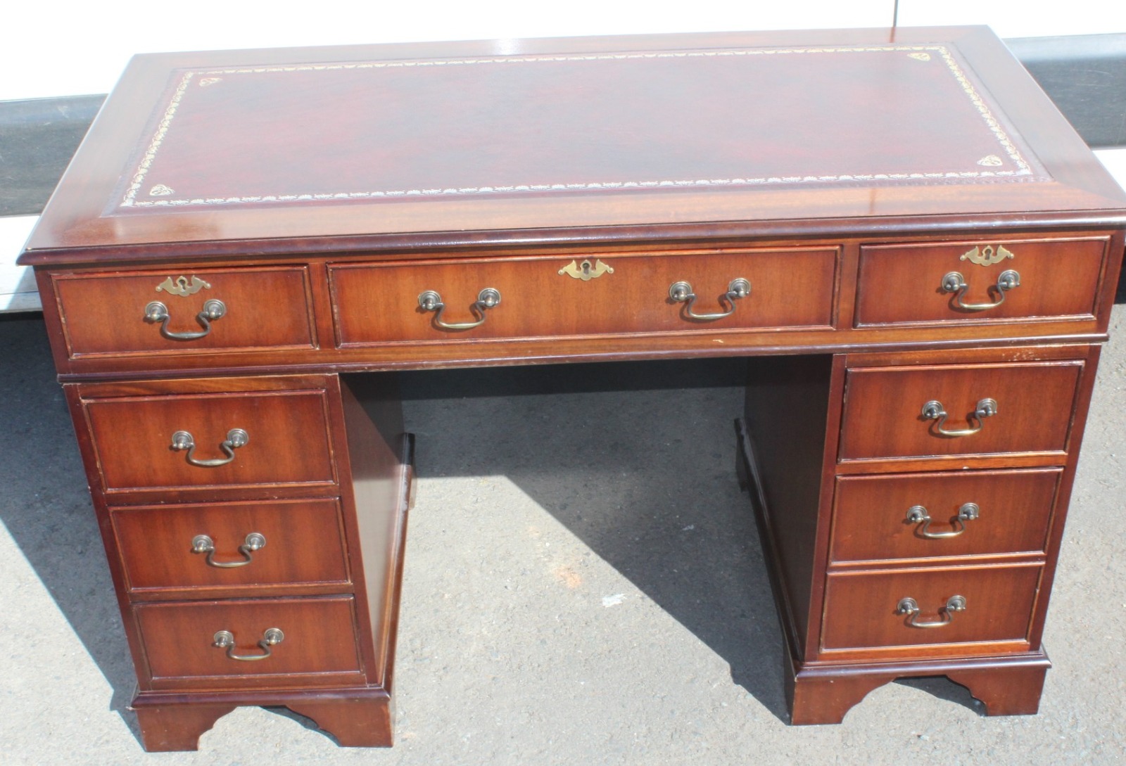 1960s Lovely Condition Mahogany Pedestal Desk with Red Leather Inset