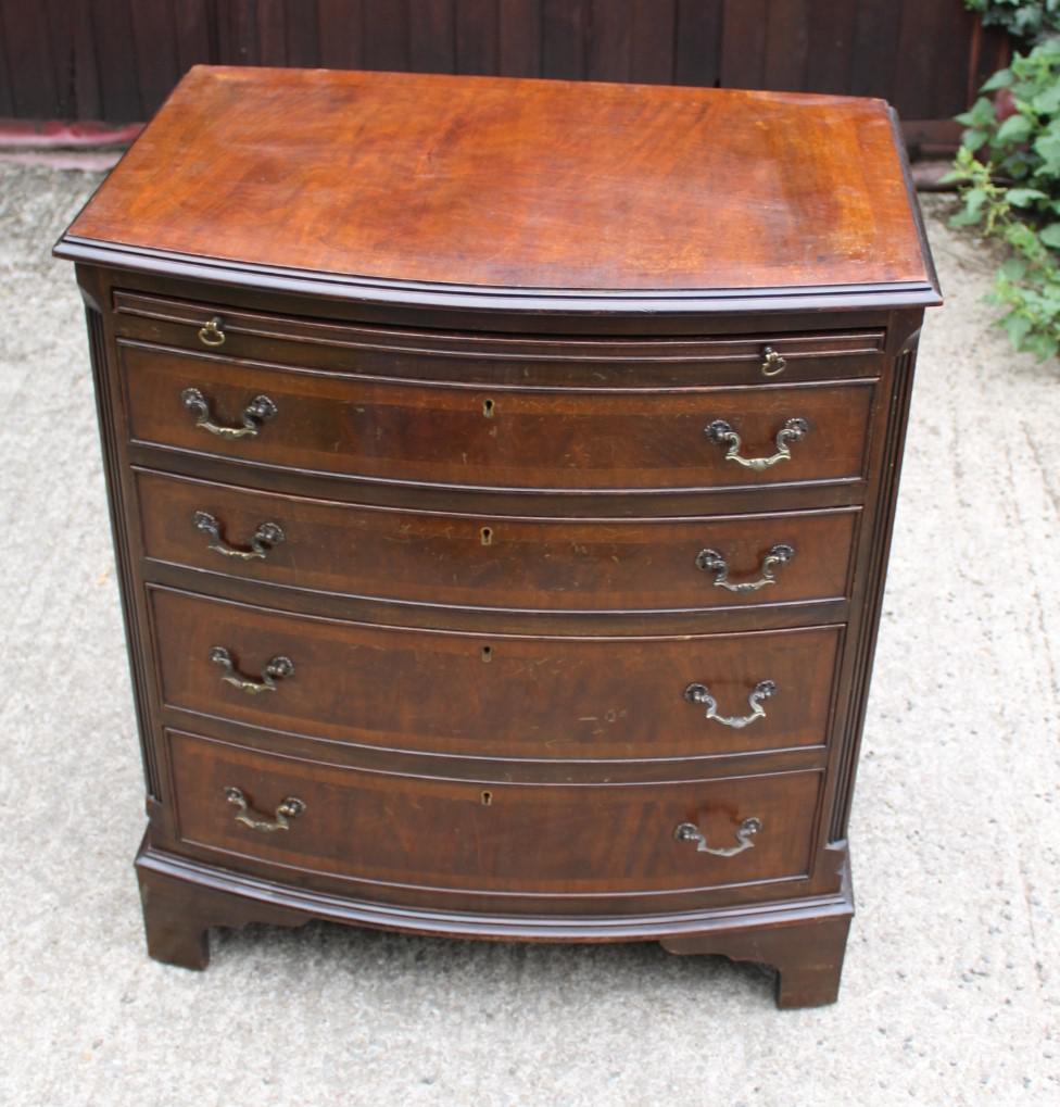 1960's Mahogany Bow Chest Drawers with Brushing Slide