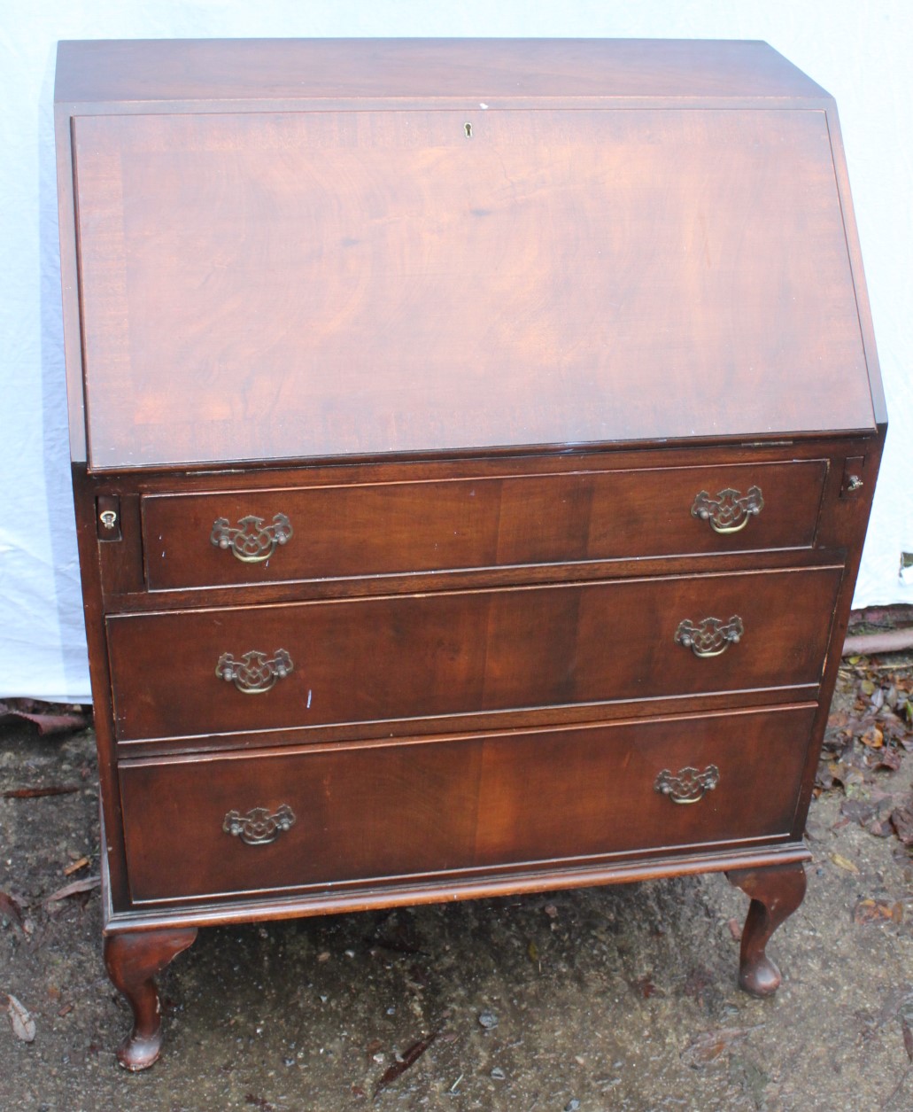 1960s Mahogany Bureau on Cab Legs with Good Interior