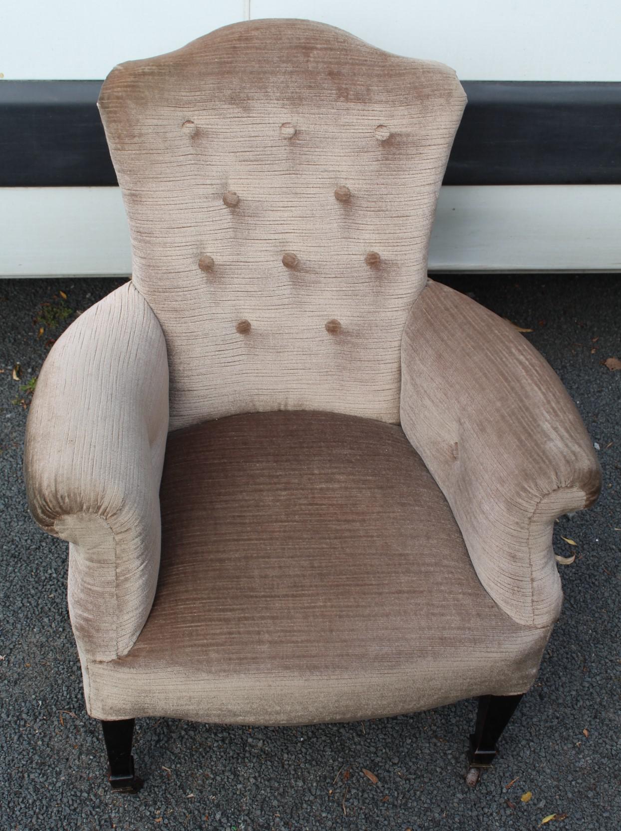 1960's Mahogany Framed Neutral tones Upholstered Armchair