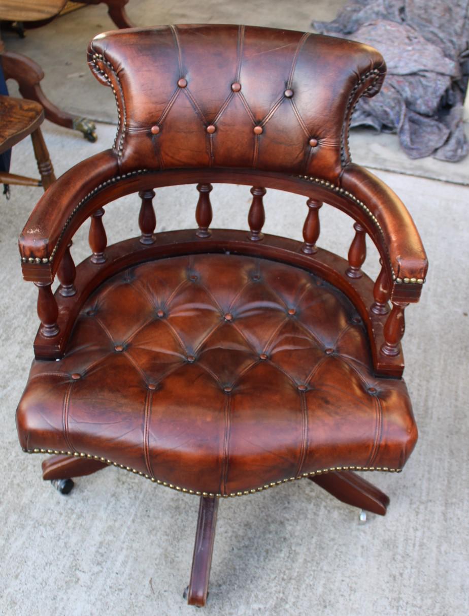 1960s Mahogany Office Chair in Brown Leather
