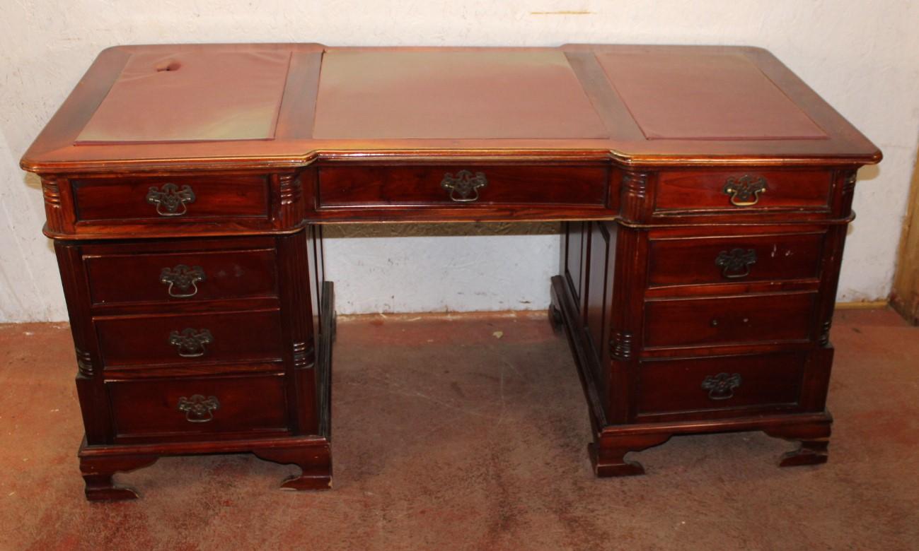 1960s Mahogany Partners Desk with Purple Leather on Top