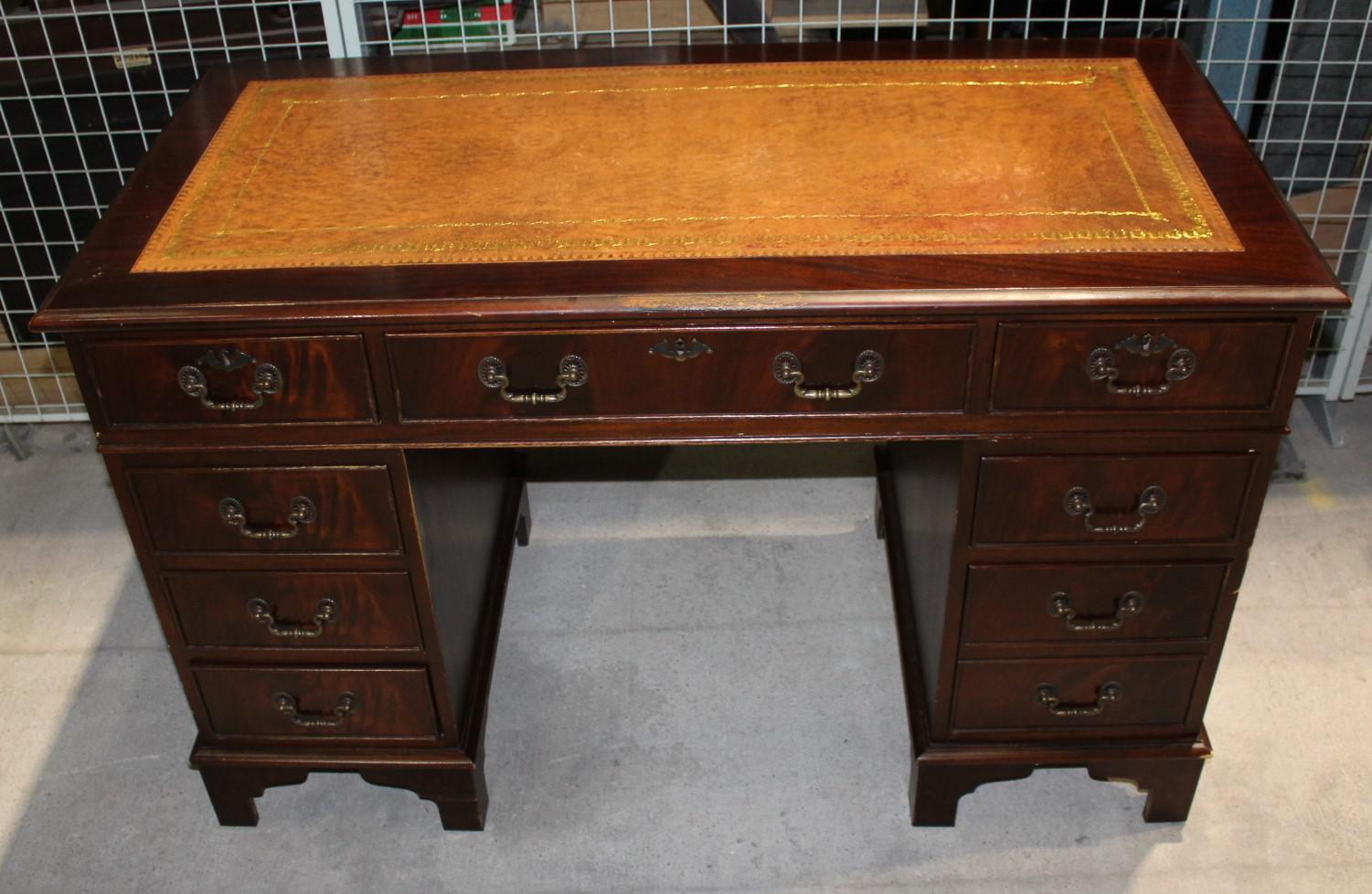 1960's Mahogany Pedestal Desk with Brown Leather Top