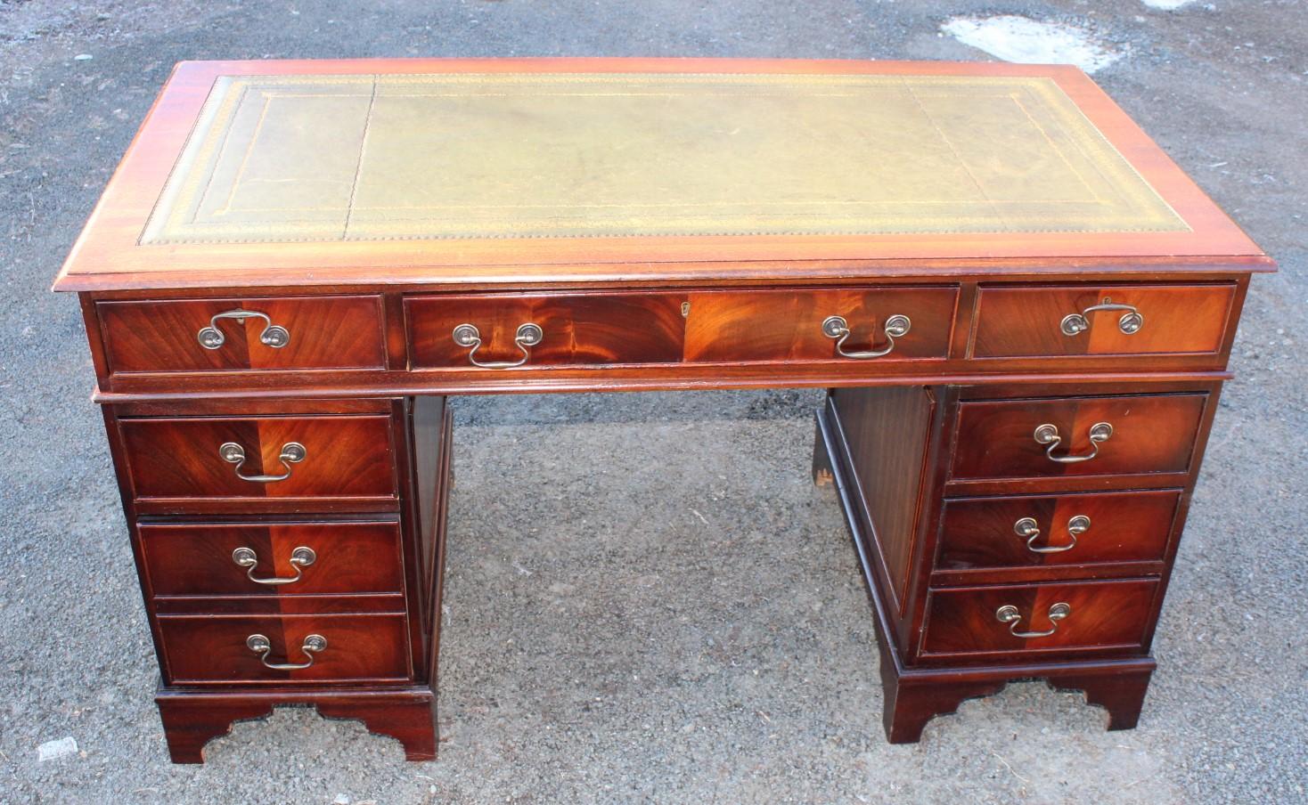 1960s Mahogany Pedestal Desk with Dark Green Inset